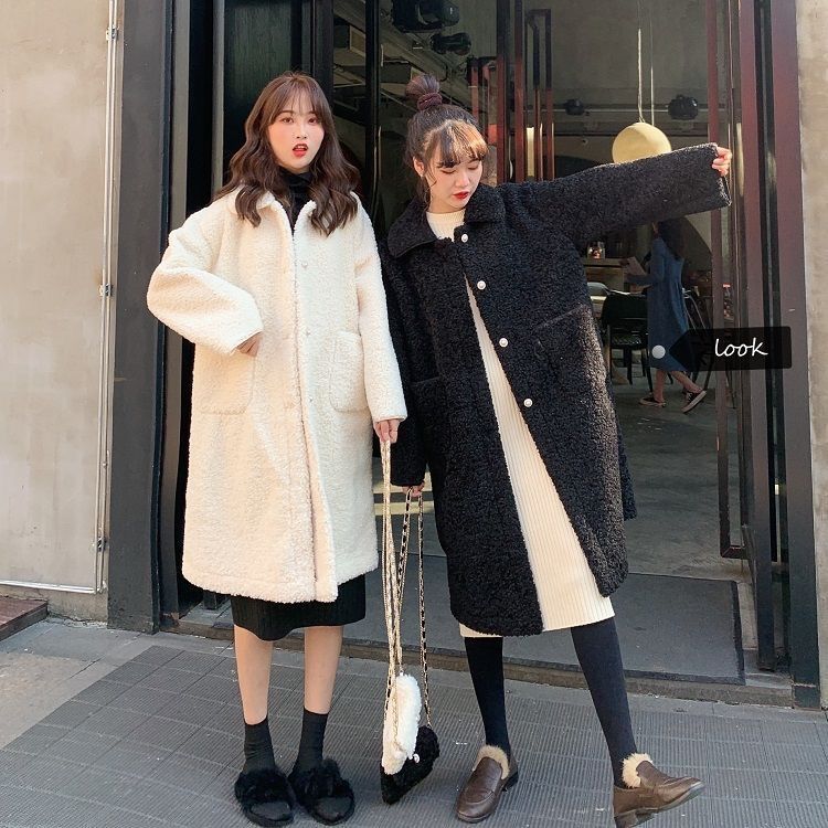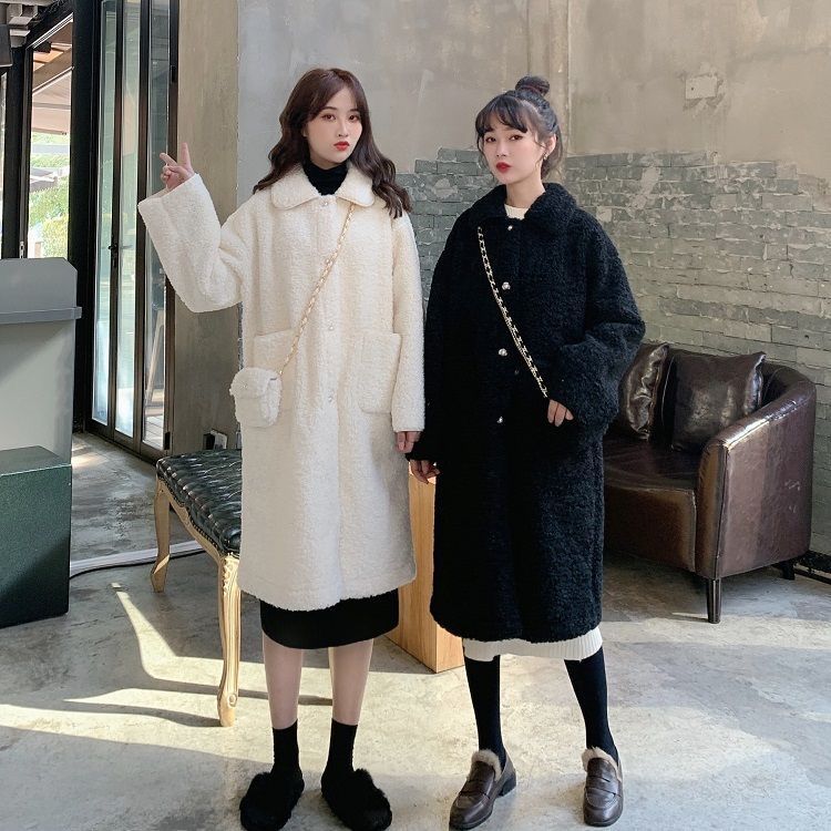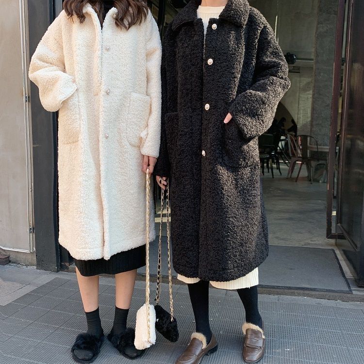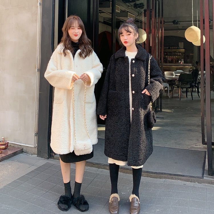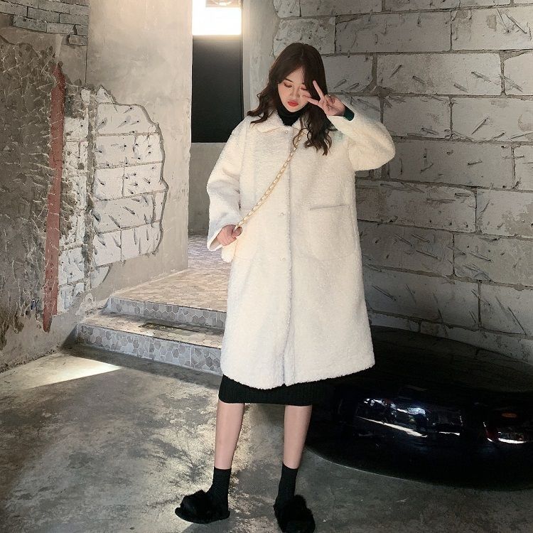 Abrigo Grueso de Imitación Lana de Cordero para Mujer Otoño e Invierno 2024 Nuevo Estilo Coreano Versátil Suelto Felpa Largo Medio Trendy