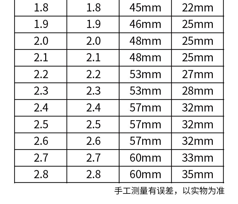 0.5mm [price of 10 pieces], 0.6mm [price of 10 pieces], 0.7mm [price of 10 pieces], 0.8mm [price of 10 pieces]...
