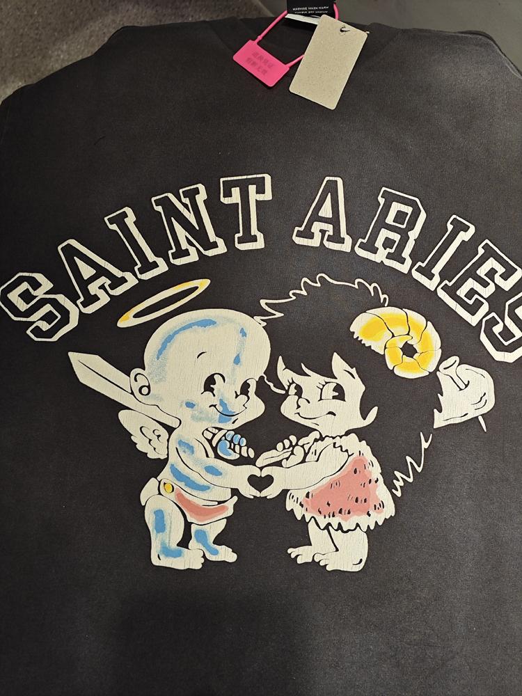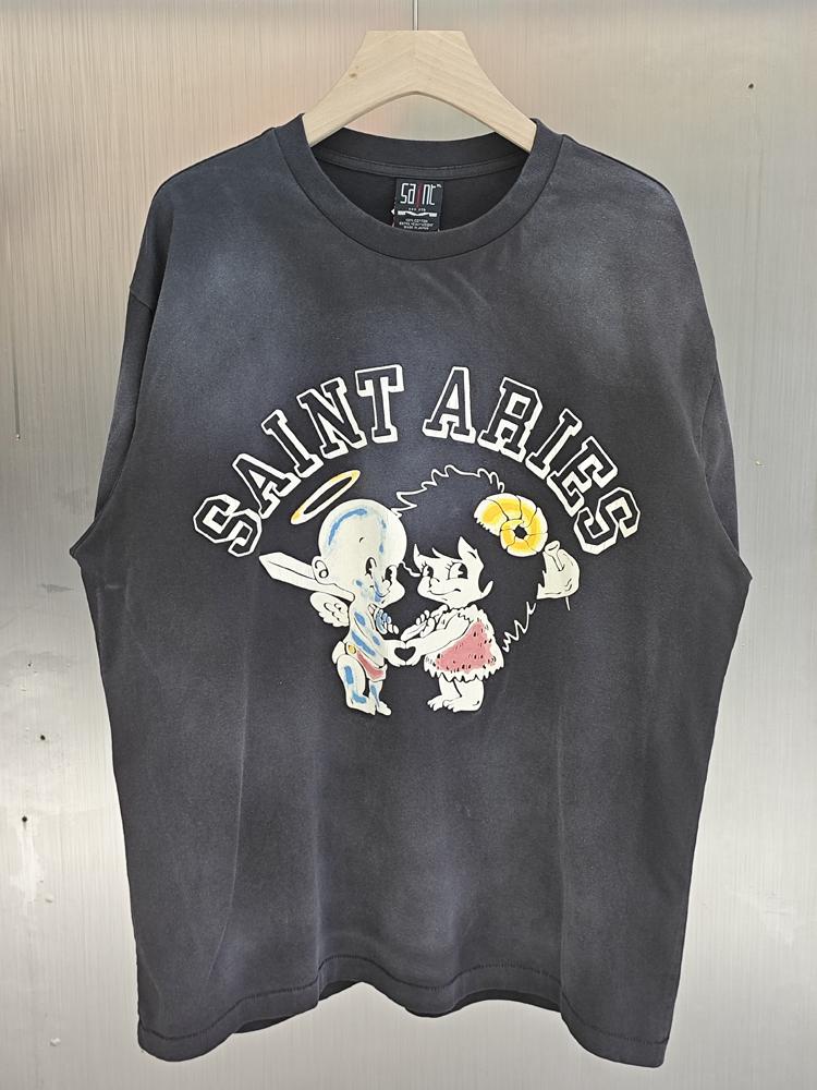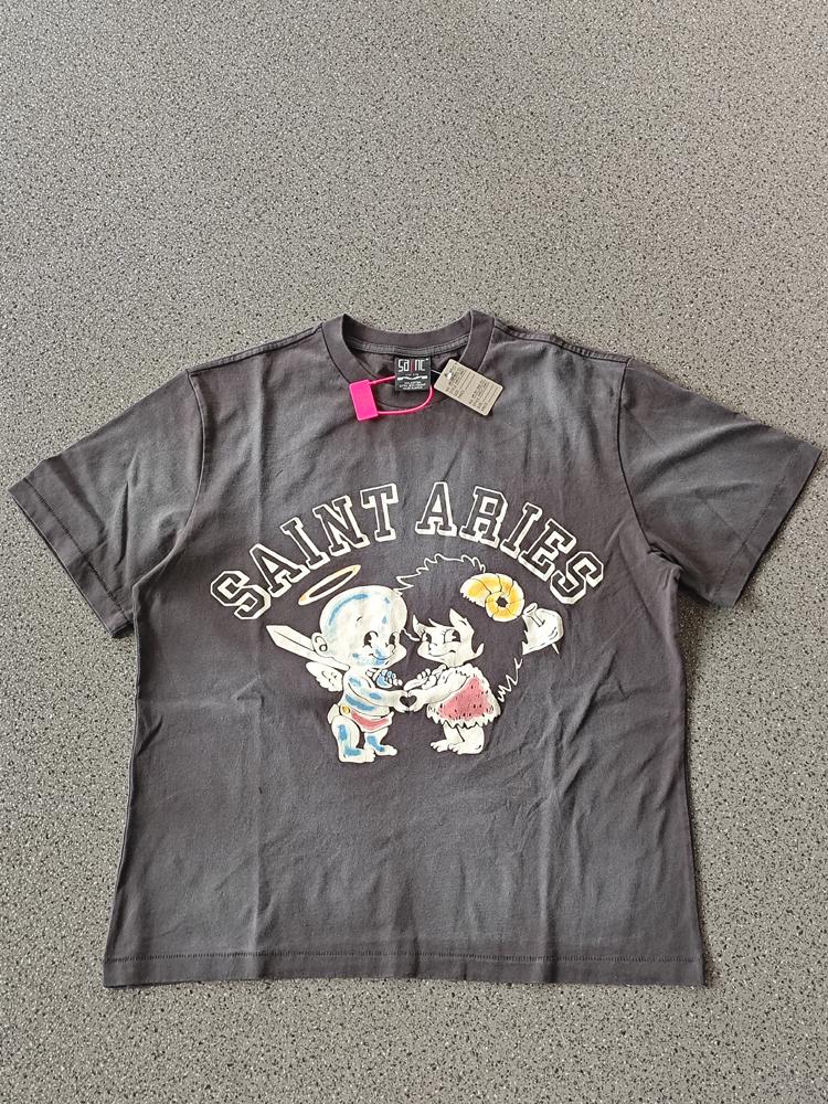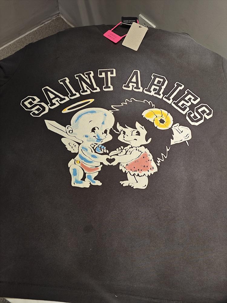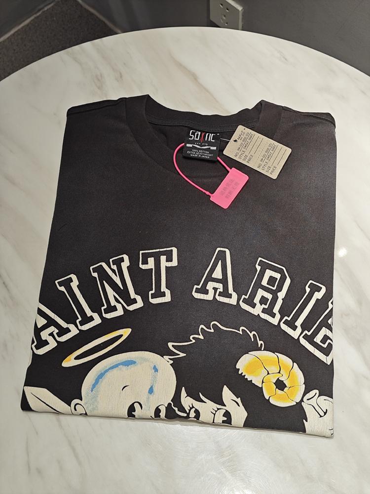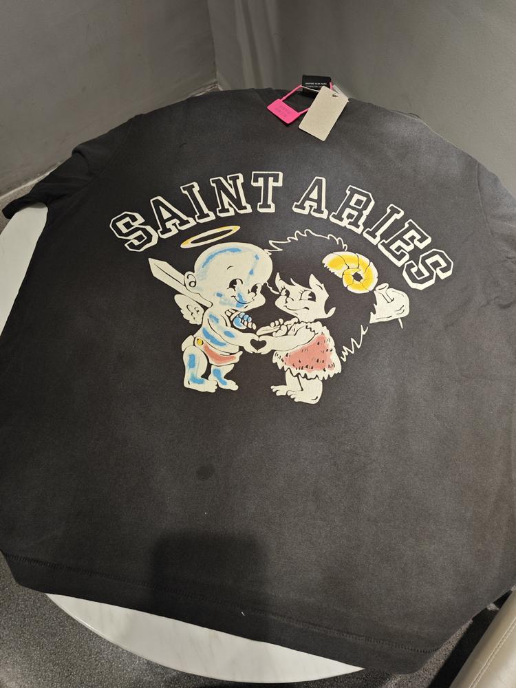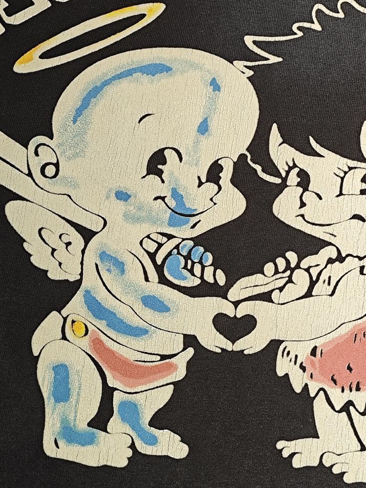 Camiseta vintage de manga corta con estampado de San Miguel Ángel Bebé, lavada, holgada y de estilo vintage, para hombre y mujer.