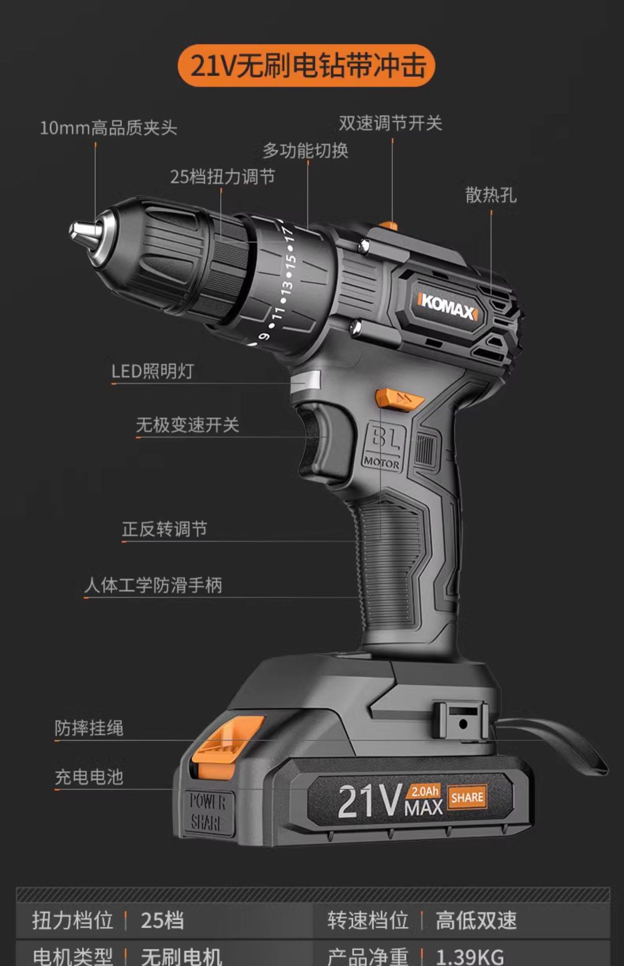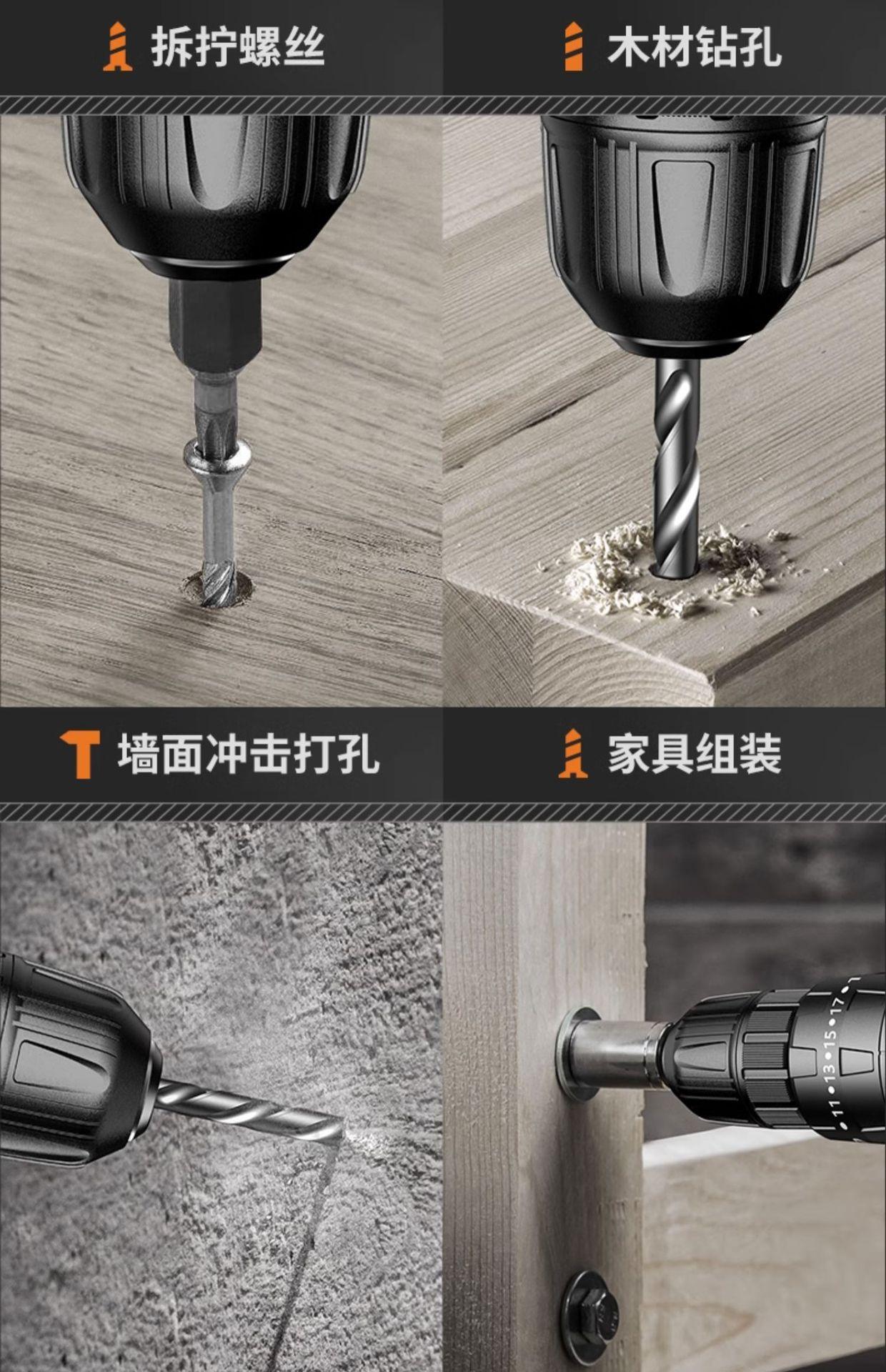 Taladro eléctrico doméstico, taladro de impacto multifuncional, taladro de mano recargable, taladro eléctrico de mano, taladro de litio, herramienta de destornillador eléctrico