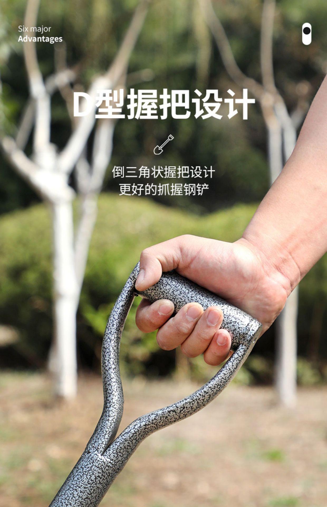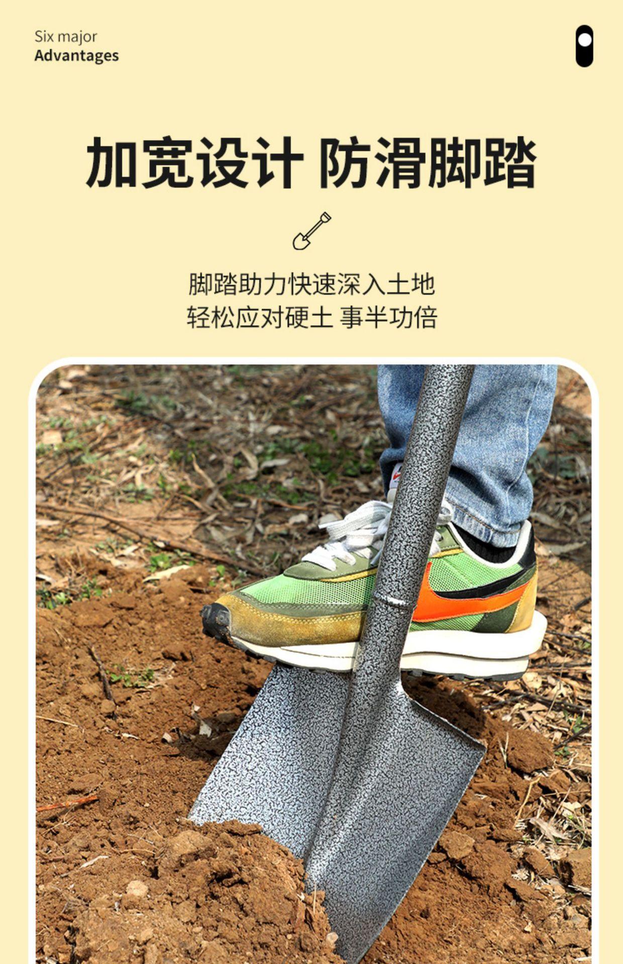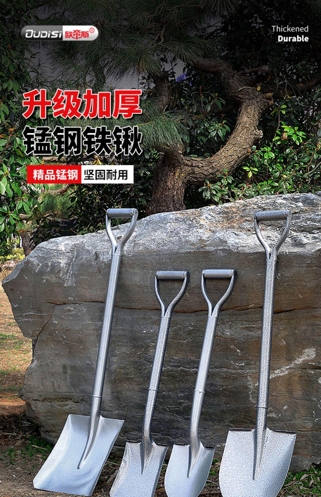 Pala de acero al manganeso engrosada, de fábrica, grande, para plantar flores, doméstica, para excavar flores, para plantar vegetales y para plantar árboles.