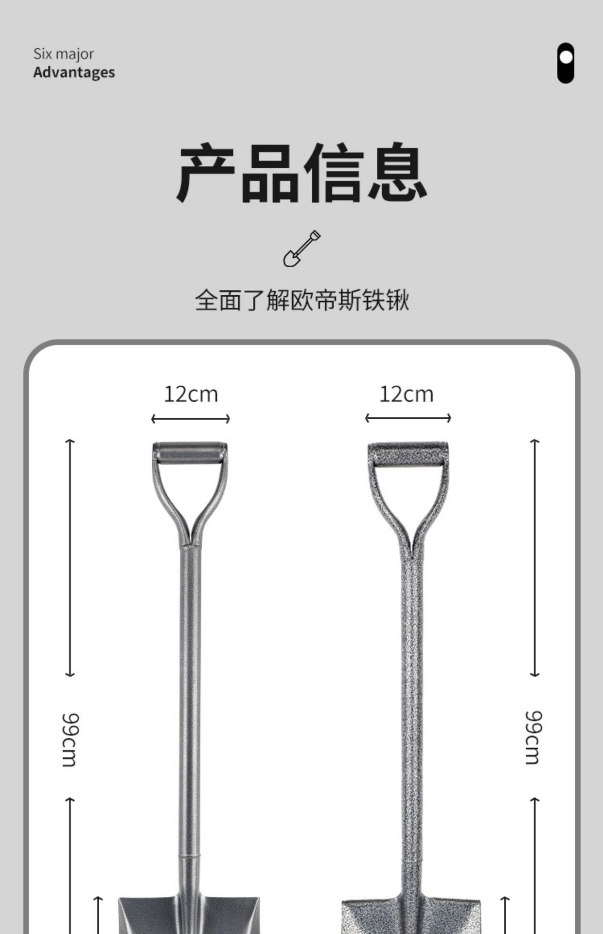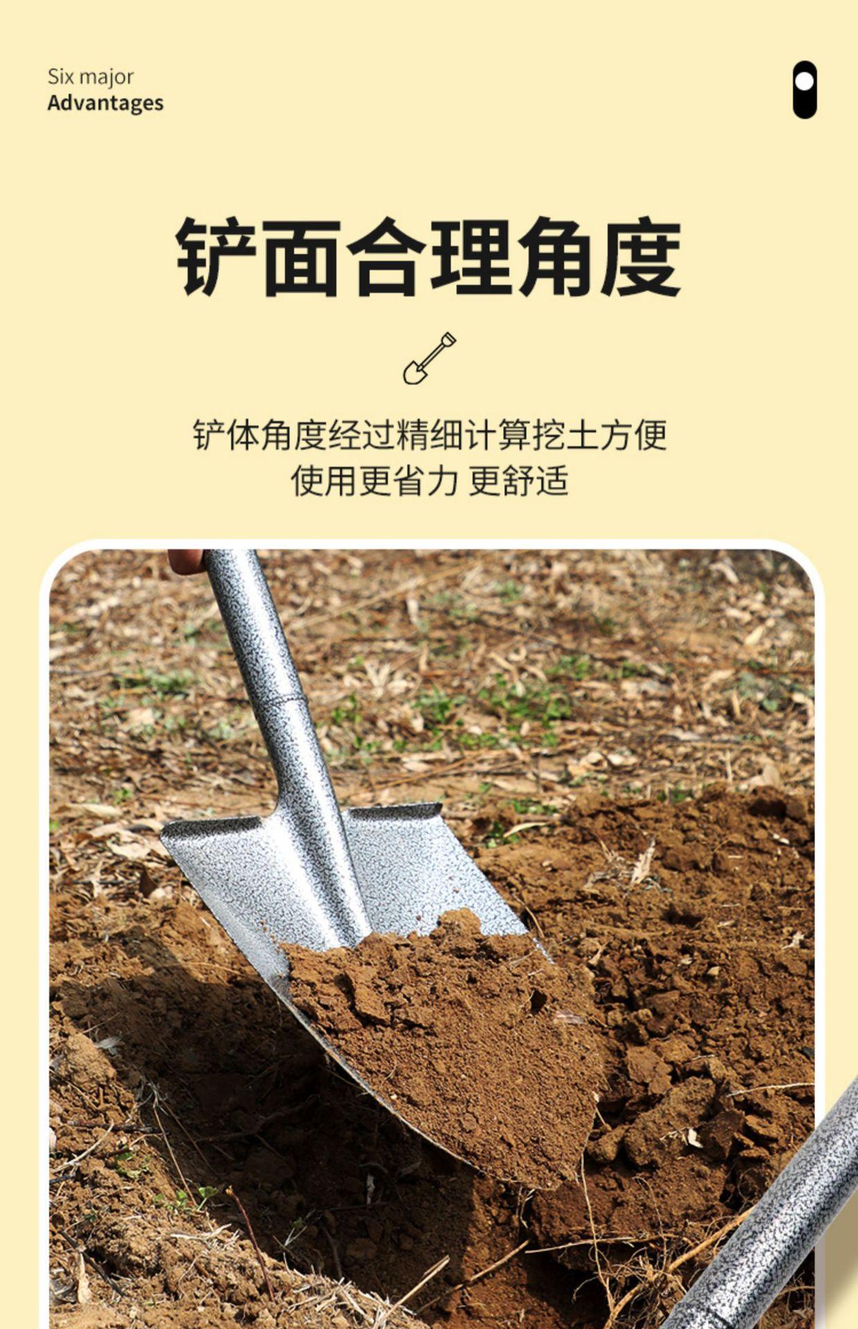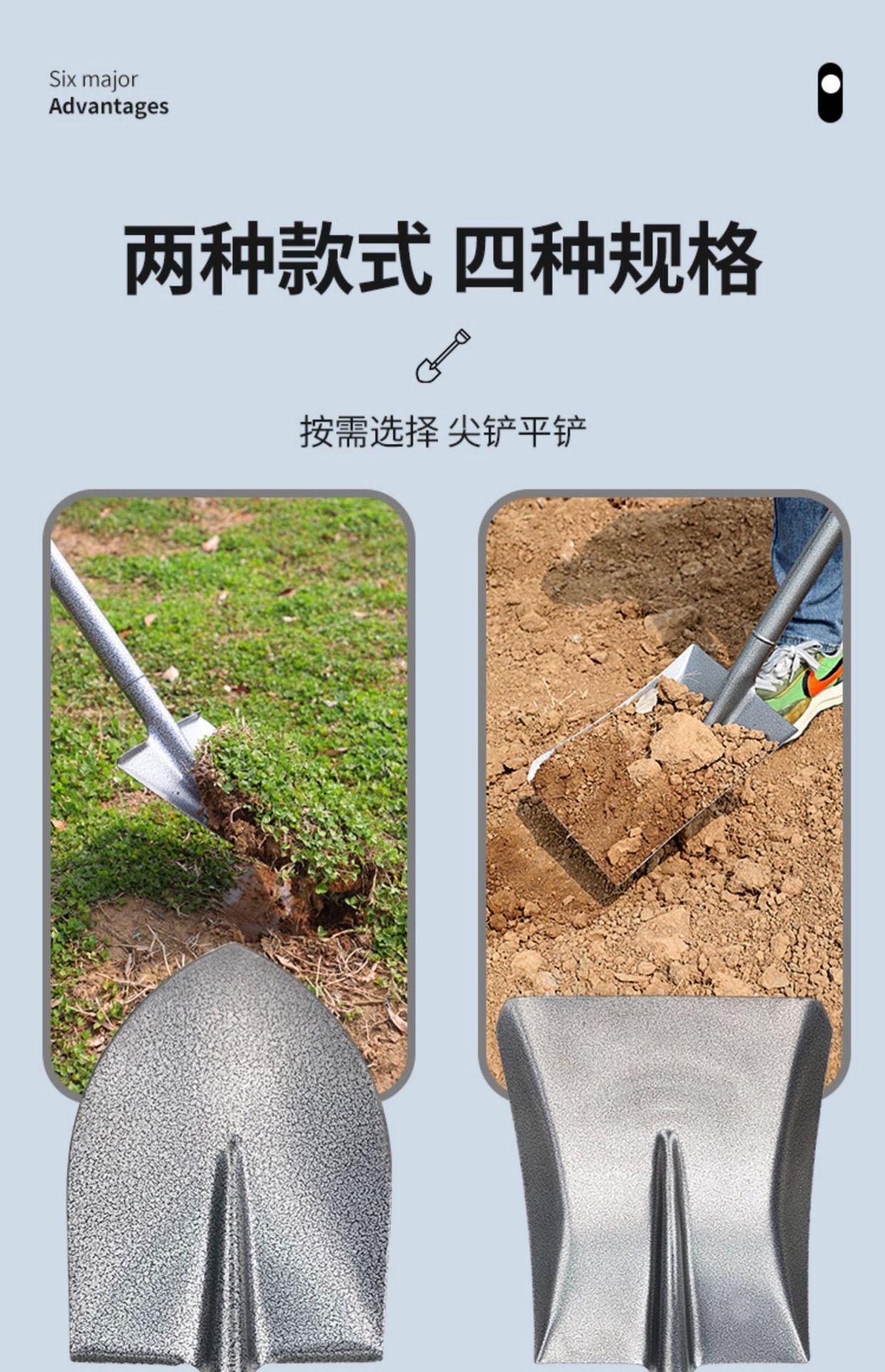 Pala de acero al manganeso engrosada, de fábrica, grande, para plantar flores, doméstica, para excavar flores, para plantar vegetales y para plantar árboles.