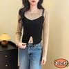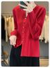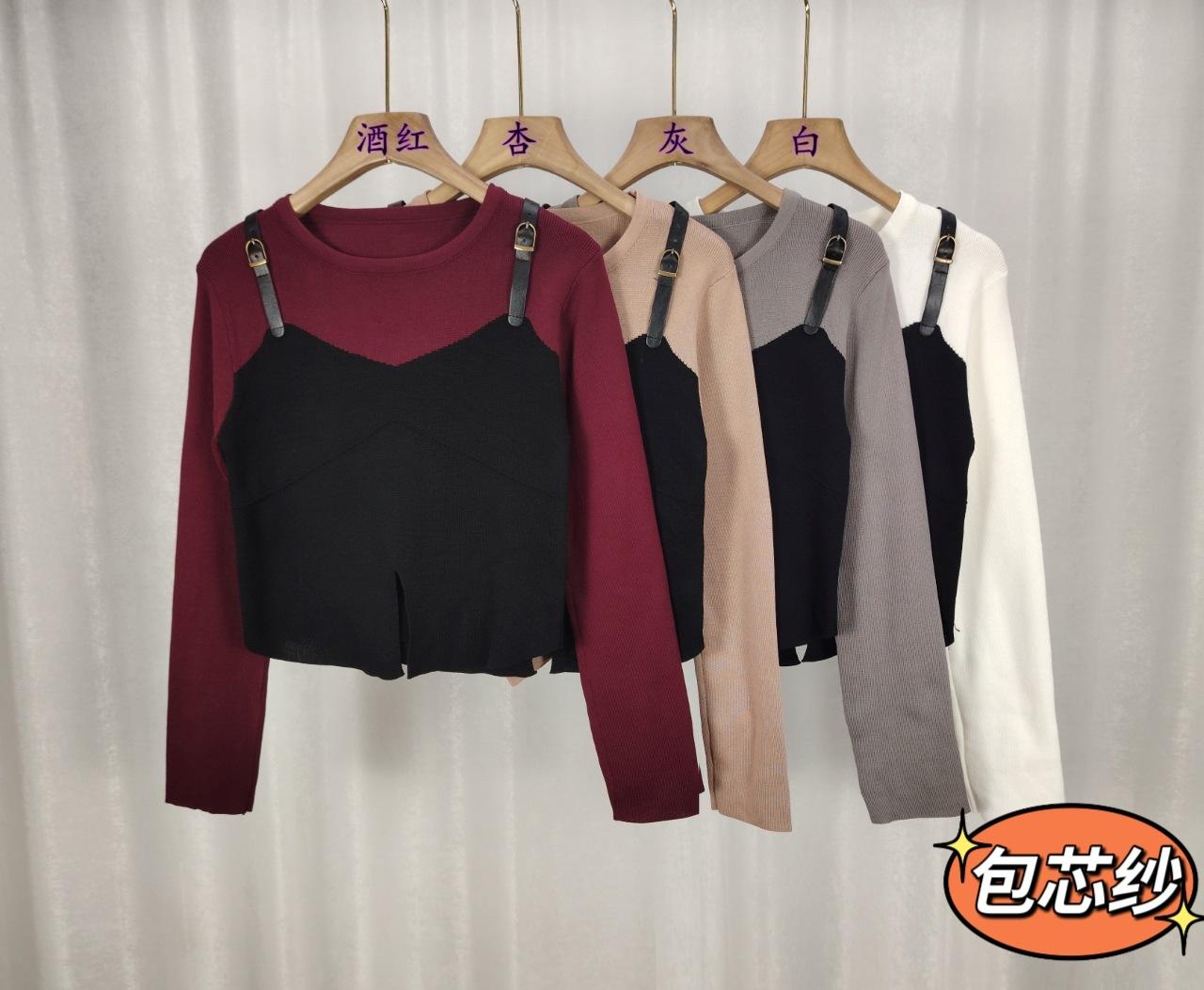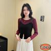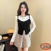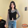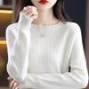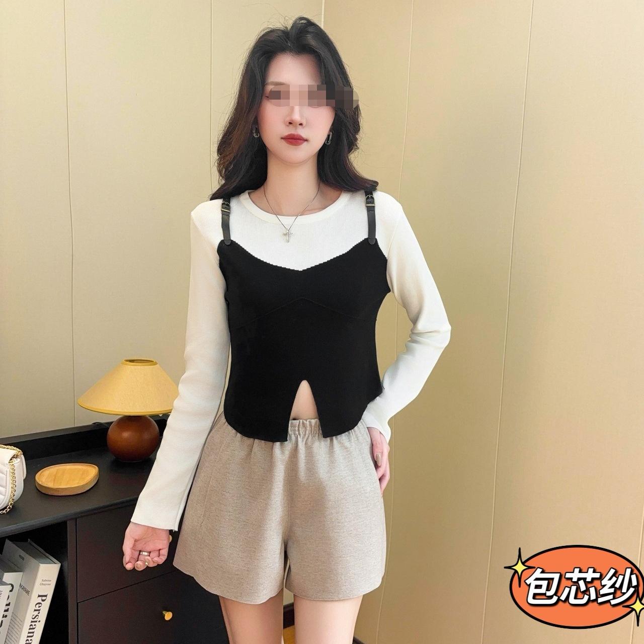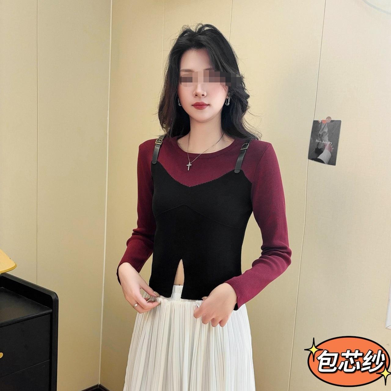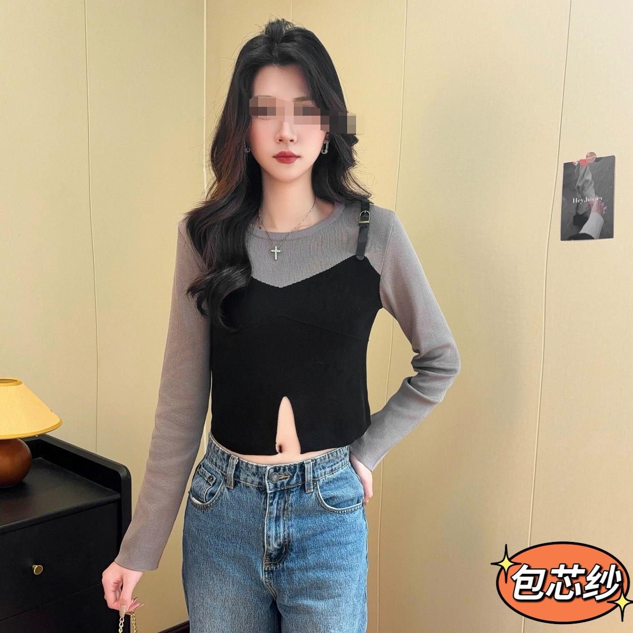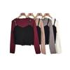 Otoño 2024 Nuevo estilo coreano Slim-Fit Adelgazante Diseño todo-combinación Sense Color Matching Short Manga larga Cuello redondo Tejido Mujer Tendencia