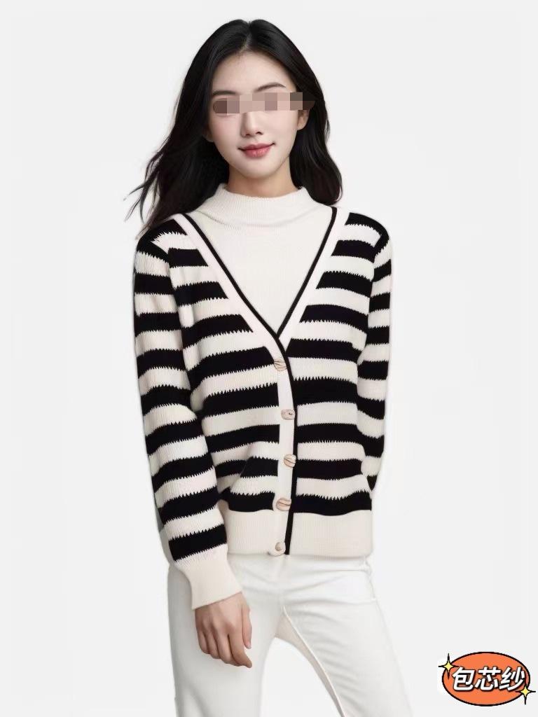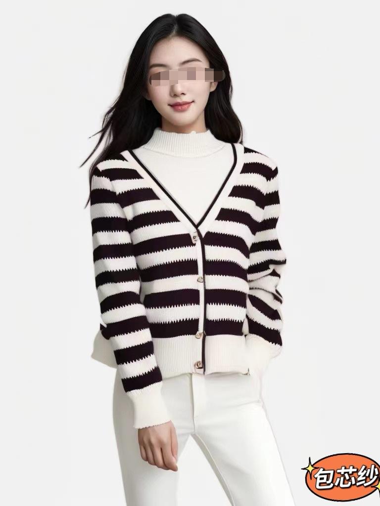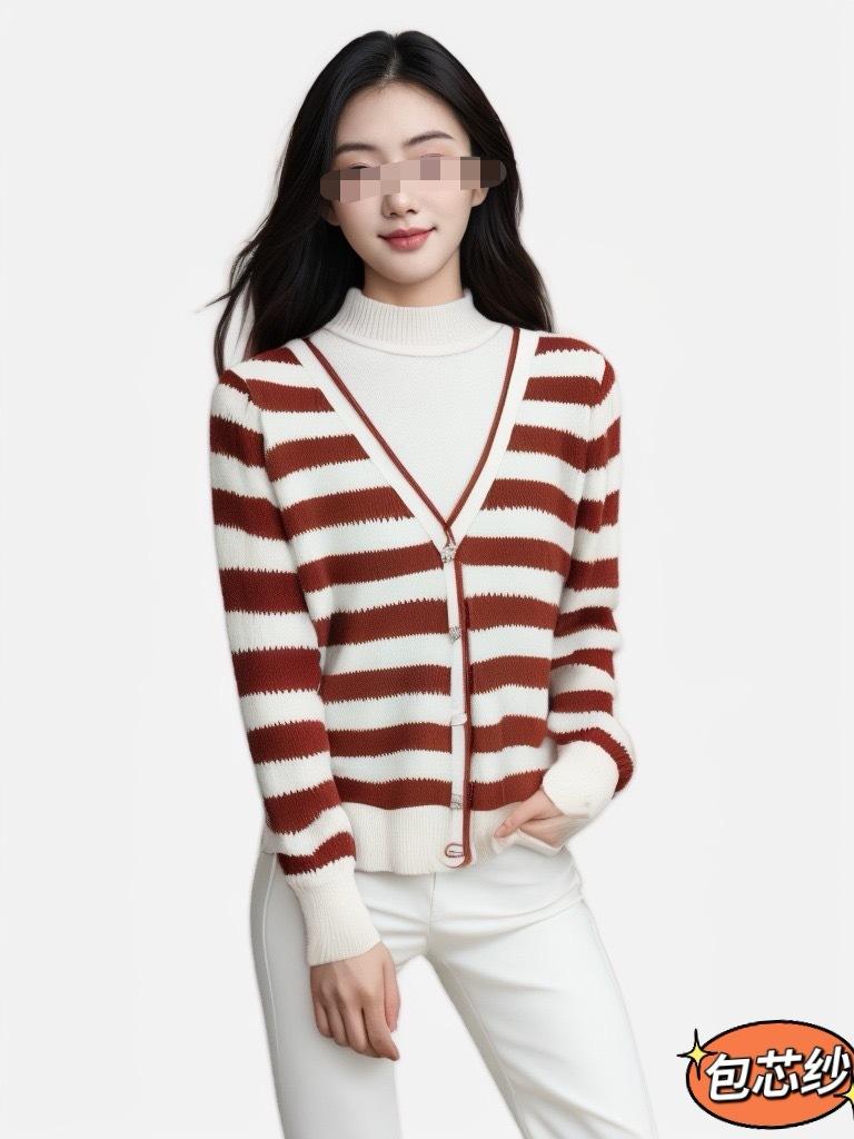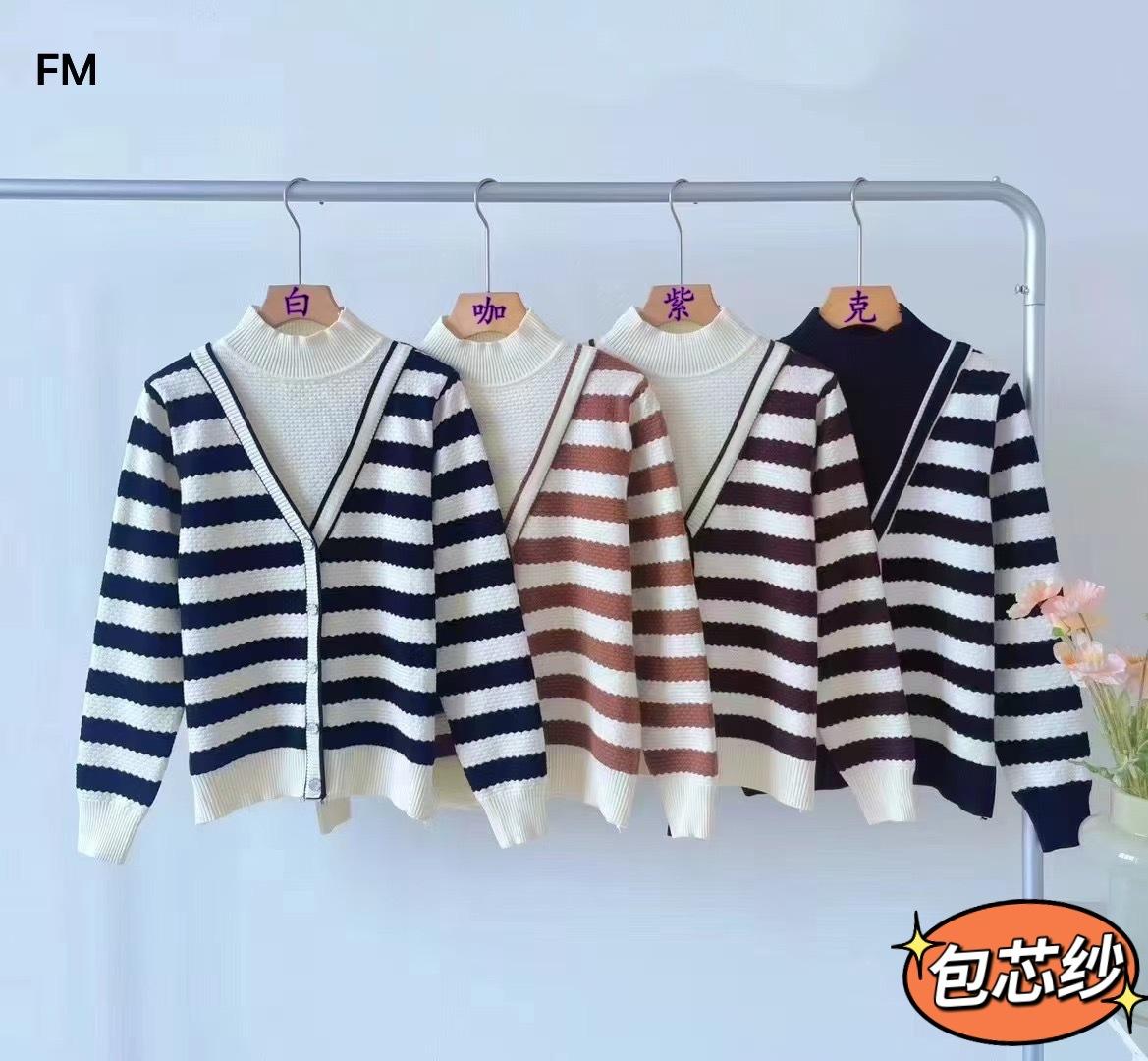Suéter de punto de manga larga de moda para otoño e invierno, suéter de rayas de cuello alto medio para mujer, diseño de dos piezas elegante con sensación de falso