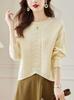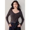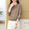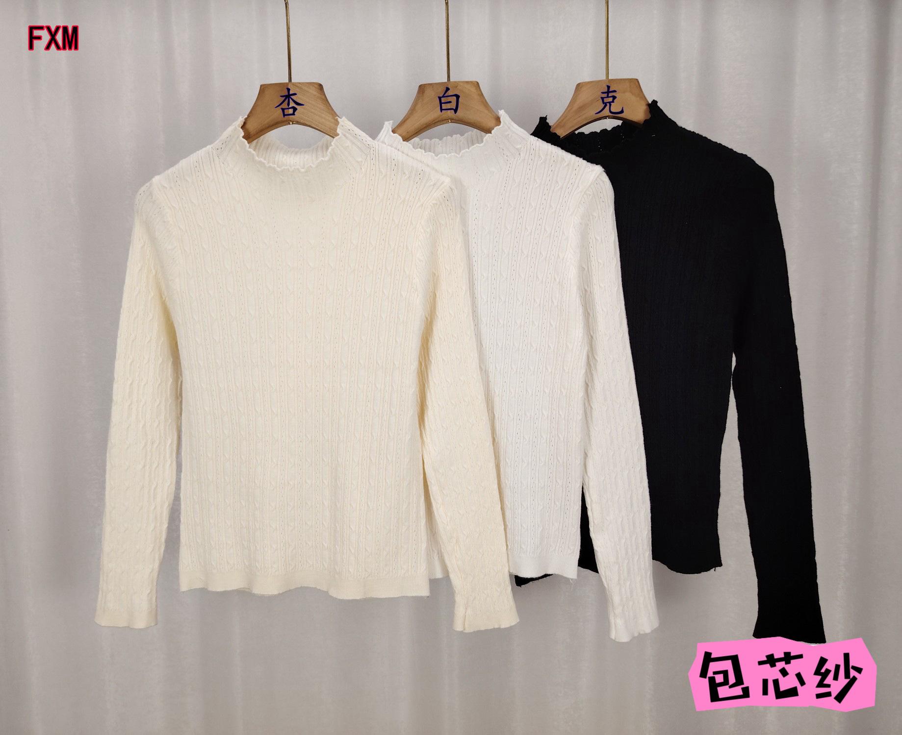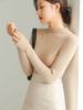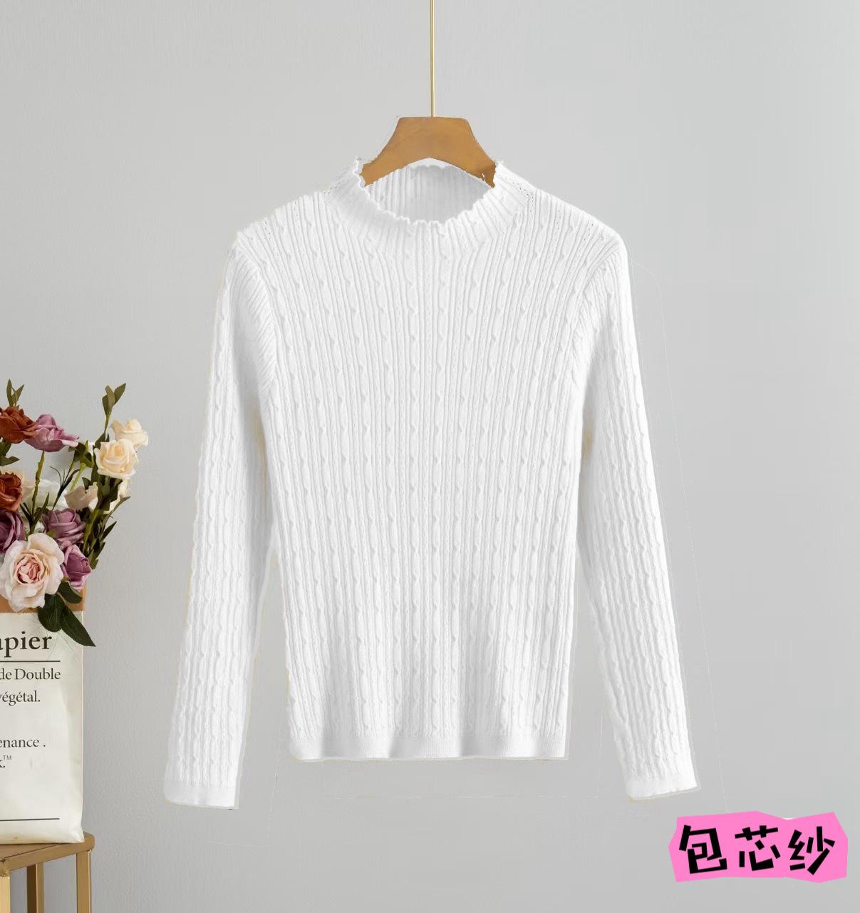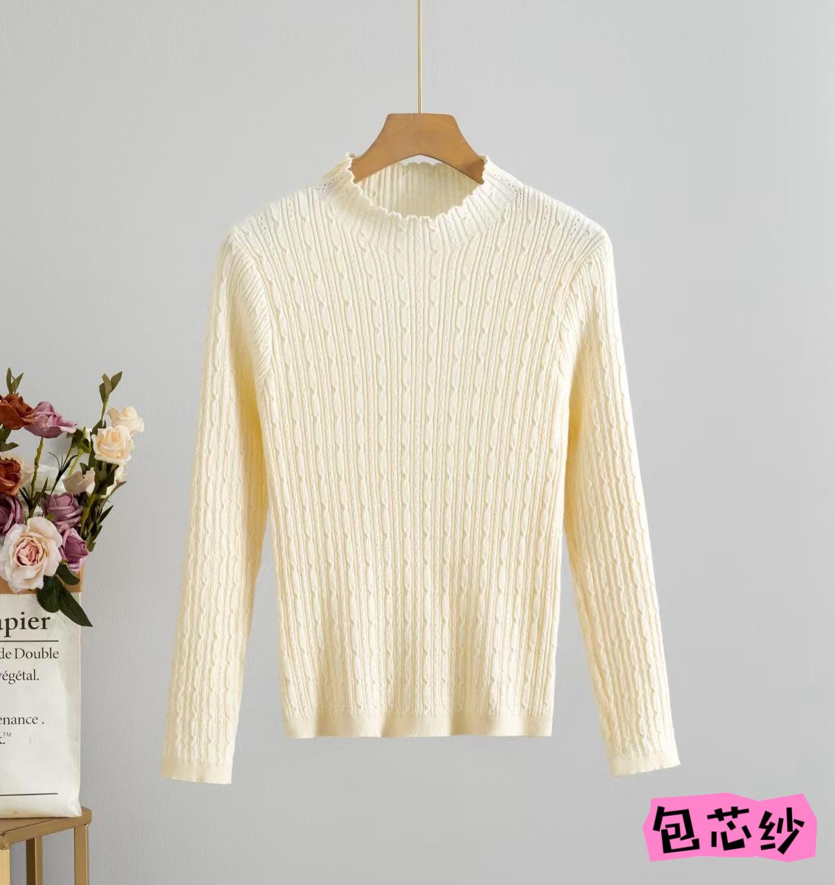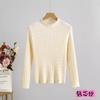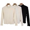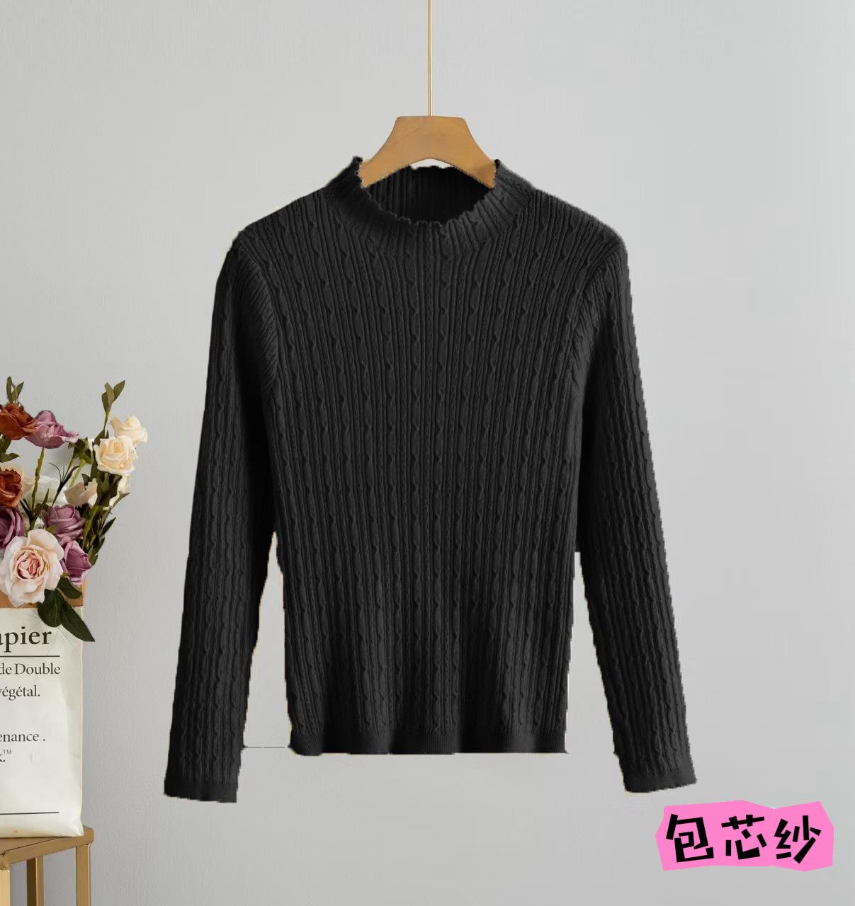 Camiseta básica de punto de cuello medio alto para mujer, suéter de alta gama de otoño 2024, nueva camisa calada con top negro