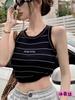 Chaleco de punto sin mangas con rayas bordadas con letras para mujer, top corto ajustado de corte Spice Girl para uso exterior.