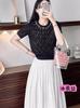 Suéter de manga corta ajustado y elegante de estilo coreano para mujer, diseño de rómbica, con cuentas huecas, estilo verano 2023