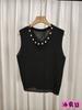 Chaleco pequeño de tirantes para mujer, traje de punto, camiseta blanca sin mangas con cuentas, camisa base, top de seda helada, nuevo