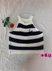Chaleco pequeño estilo francés retro de punto con rayas en los hombros, top dulce, ajustado, para uso interior y exterior, para mujer, de verano