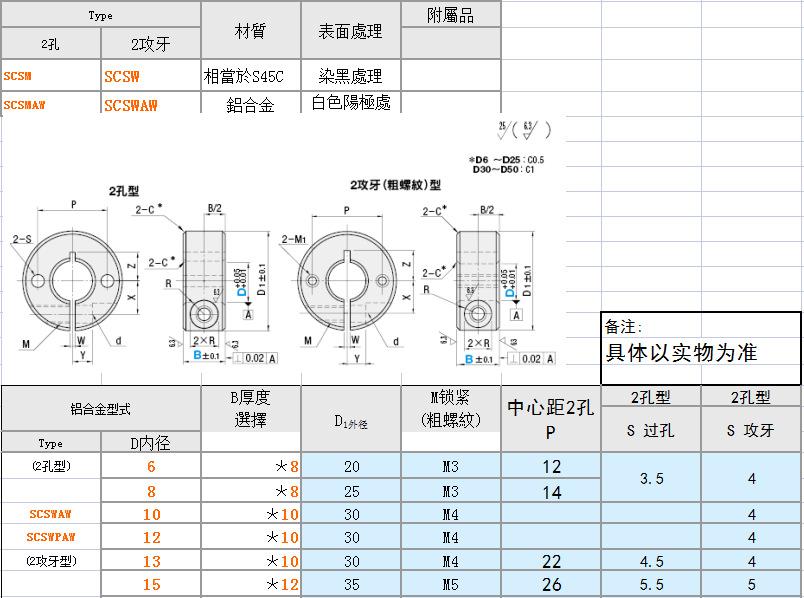 Aluminum threaded hole separation inner diameter 6*20*8)