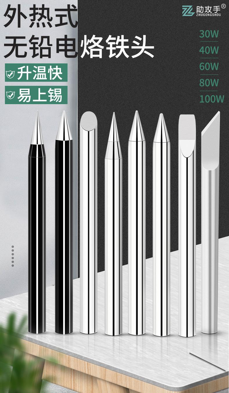 Cabezal de soldador sin plomo, boquilla Luo Tie, cabezal de soldadura con calentamiento externo, cabezal de corte, punta plana tipo herradura, 30 W, 40 W, 60 W, 80 W y 100 W.