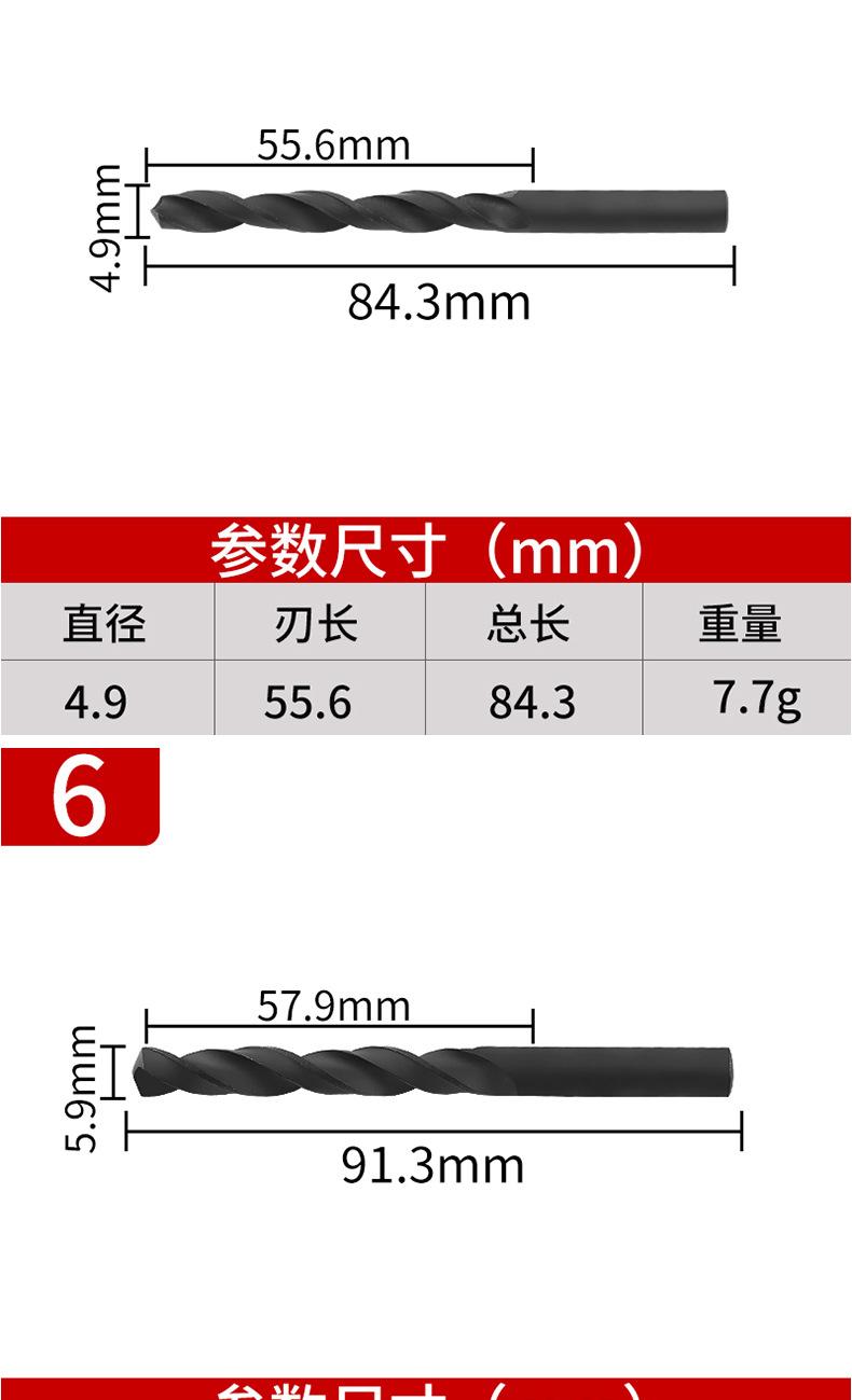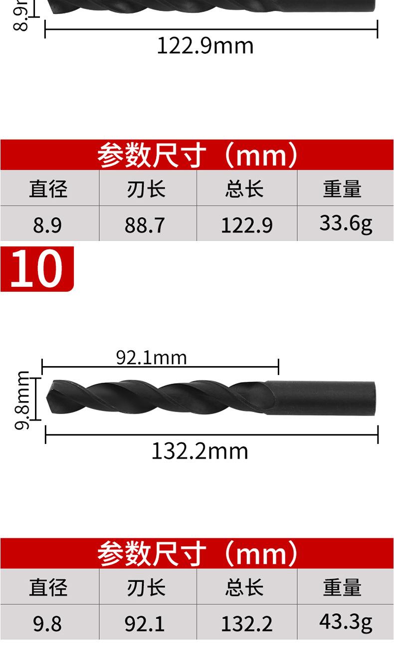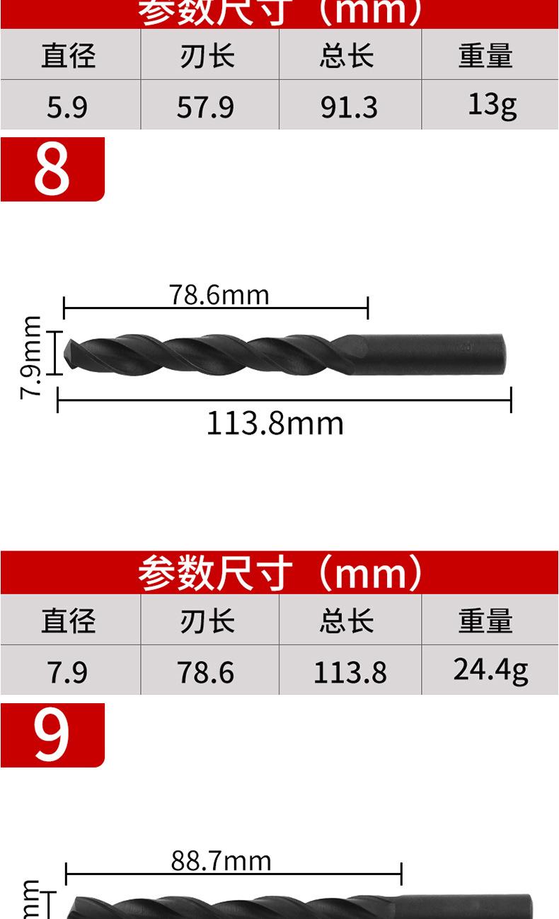 5mm twist drill, 6mm twist drill, 8mm twist drill, 9mm twist drill, 10mm twist drill, Opening diameter 19mm, O...