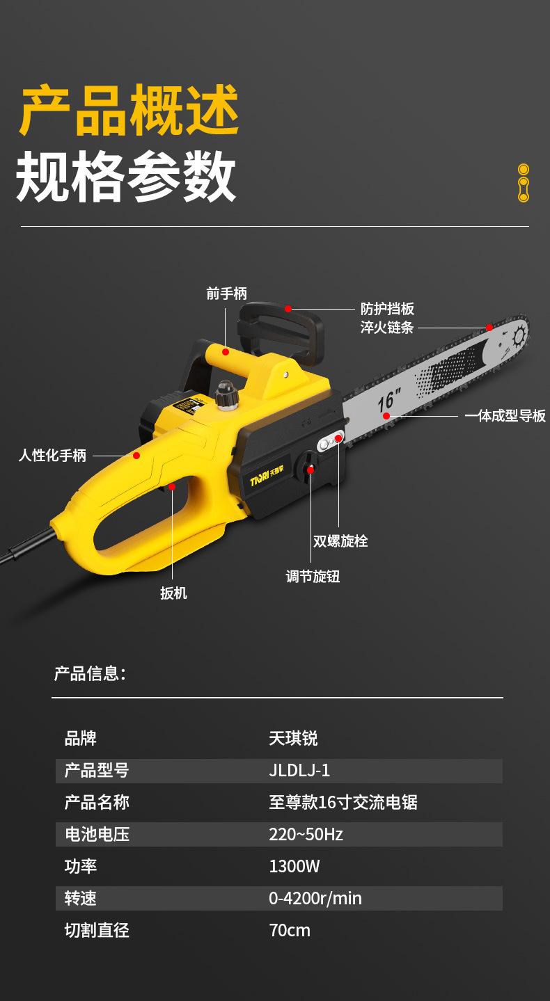 Tianqi Rui motosierra eléctrica motosierra para tala hogar 220V motosierra eléctrica carpintería cadena para aserrar árbol artefacto con cable 16 pulgadas