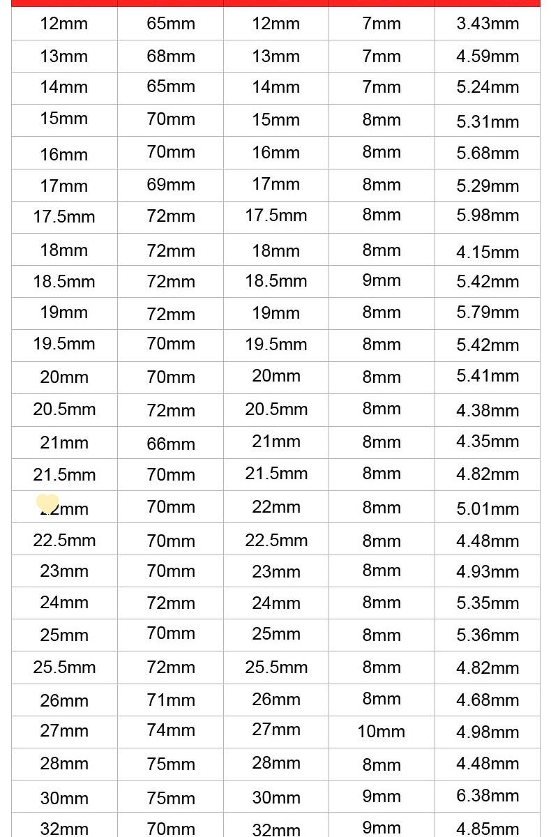 12mm, 13mm, 14mm, 15mm, 16mm, 17mm, 17.5mm, 18mm, 18.5mm, 19mm, 19.5mm, 20mm, 20.5mm, 21mm, 21.5mm, 22mm, 22.5...