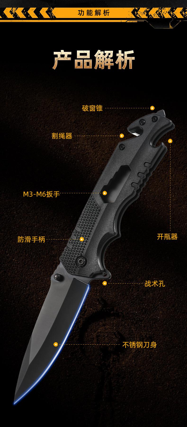 Cuchillo de acero inoxidable para exteriores, de alta dureza, multiusos, de autodefensa, plegable, para acampar, supervivencia, portátil, de bolsillo
