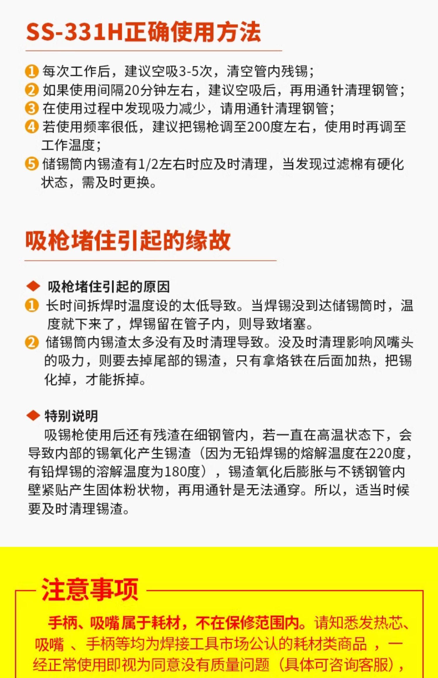 SS-331H standard, SS-331H heating core, 331H suction gun special glass tube, SS-331H tin absorber handle, SS-3...