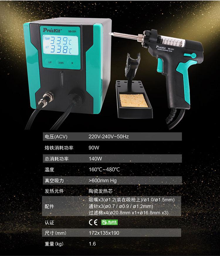 Taiwan Baogong SS-331H Soldador Eléctrico Automático Absorbedor de Estaño Potente Eliminación de Estaño Mesa de Agarre Mesa de Soldadura Pistola Absorbedora de Estaño