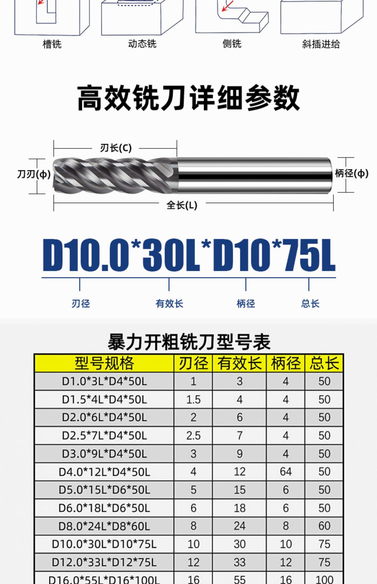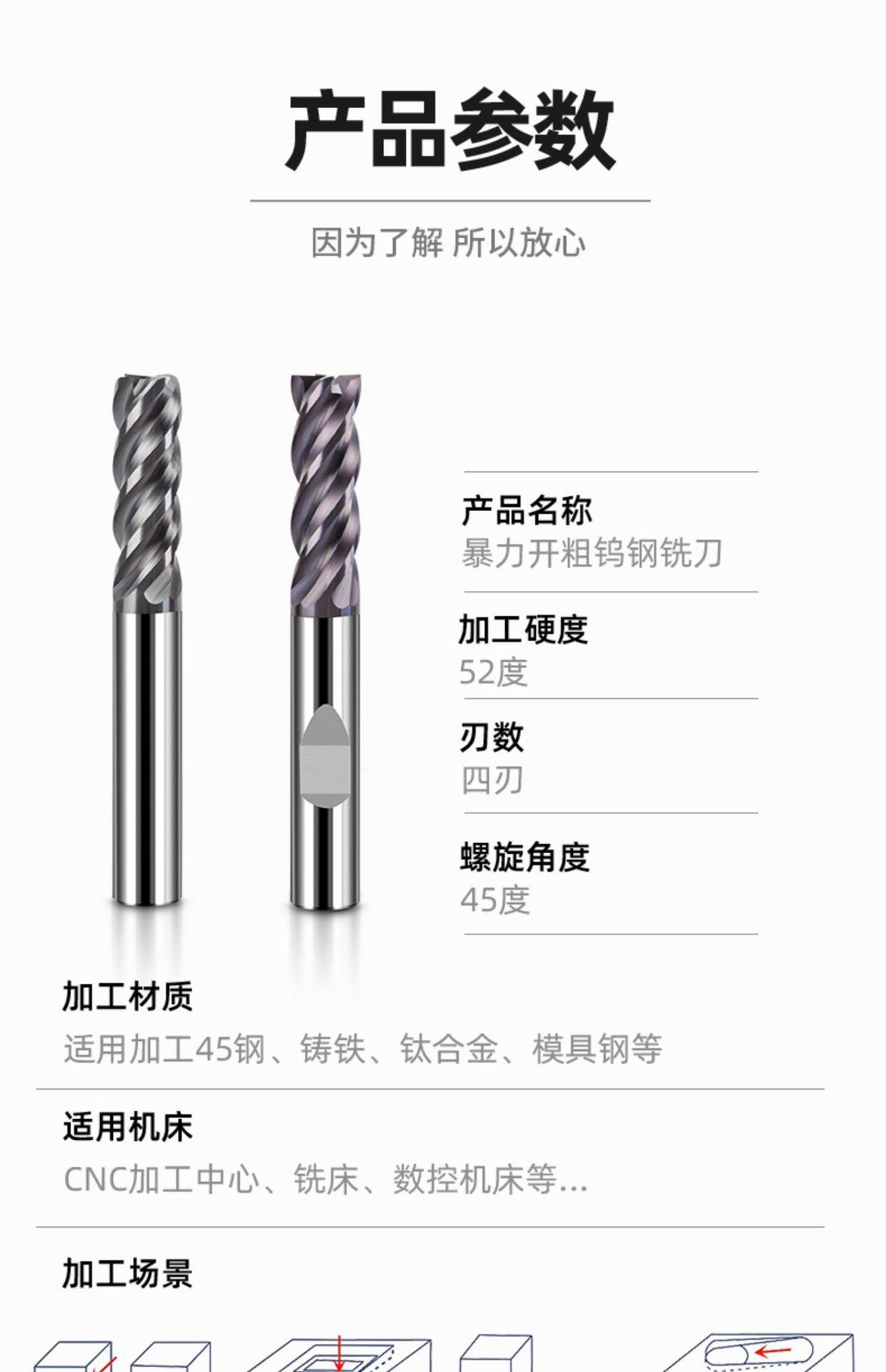 Fresa de acero de tungsteno de avance rápido fresa de extremo de acero inoxidable fresa de ranurar de carburo 4 filos CNC