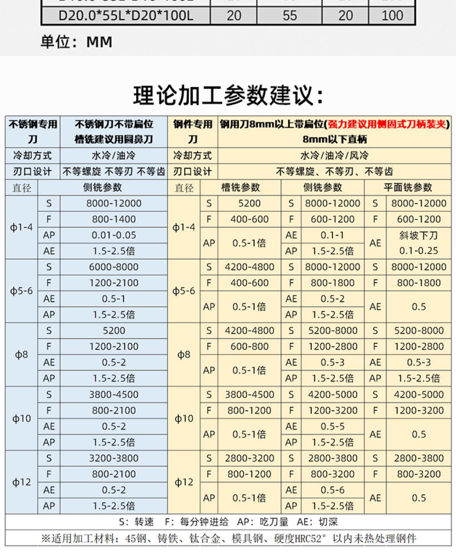 (for steel) 1*3*d4*50*4t, (for steel) 1.5*4*d4*50*4t, (for steel) 2*6*d4*50*4t, (for steel) 2.5*7*d4*50*4t, (f...