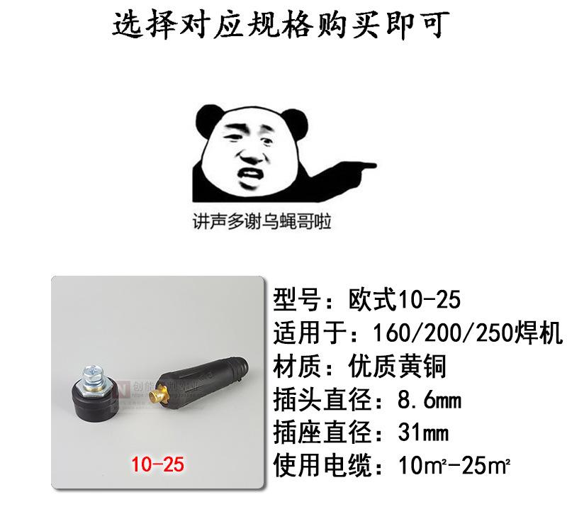 Máquina de soldar eléctrica de cobre puro DKJ10-25, cable de soldadura, conector de enchufe rápido macho y hembra, enchufe rápido europeo, conjunto completo de accesorios