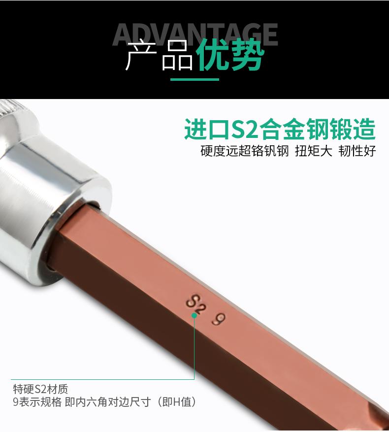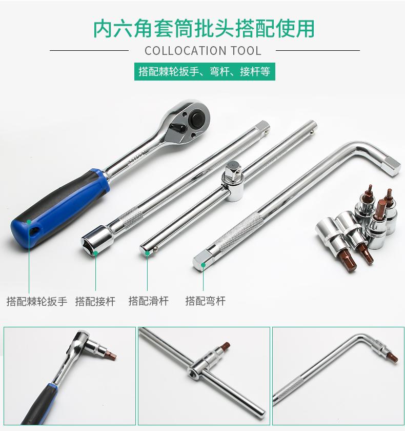 Vaso para llave hexagonal eléctrica de cabeza hueca hexagonal, cabeza de lote, herramienta de vaso para destornillador hexagonal interior alargado para pistola de aire