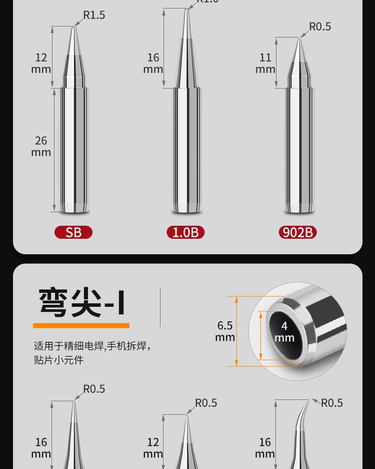Cabezal de soldador sin plomo 936, tipo de calentamiento interno, temperatura constante, cabezal de soldador eléctrico Luo, boca puntiaguda, cabezal de corte en forma de herradura, estación de soldadura de 60 W, tipo universal