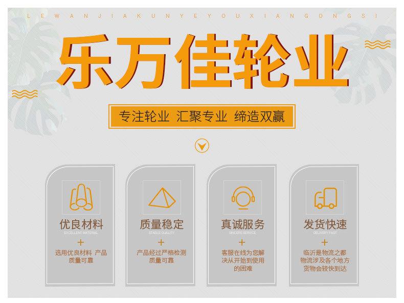 Linyi Lewanjia Wheel Industry está ubicada en el pueblo de Xianggong, distrito de Hedong, ciudad de Linyi, provincia de Shandong. Es una empresa especializada en la producción de ruedas giratorias, ruedas universales, ruedas industriales y mineras, ruedas para carretillas, ruedas para vehículos de tracción humana y ruedas sólidas. Limita con la autopista Changshen al este, y las autopistas Beijing-Shanghai, Lancao y Rilan cruzan el territorio al oeste, con transporte conveniente. En los más de 10 años desde su establecimiento, la empresa se ha adherido al principio de cliente primero y sus productos se han vendido a más de 30 provincias y ciudades. La integridad, la fortaleza y la calidad de los productos de la empresa han sido reconocidas por la industria y elogiadas por los usuarios. Aceptamos humildemente los comentarios sinceros de los consumidores y socios, y actualizamos y mejoramos continuamente nuestros productos. Es la filosofía de la empresa hacer cosas buenas con el corazón y hacer grandes cosas.