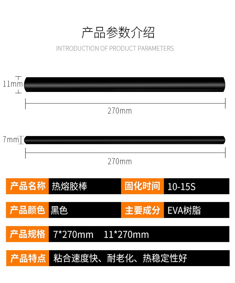 Barra de pegamento termofusible negra, resistente, transparente, pistola de pegamento termofusible manual de alta viscosidad, barra de pegamento instantáneo de 7 mm y 11 mm