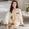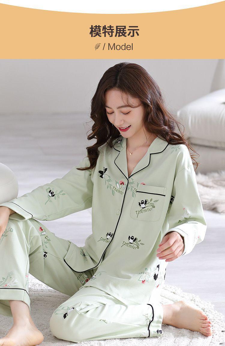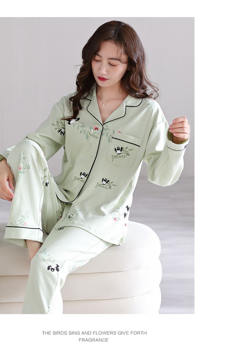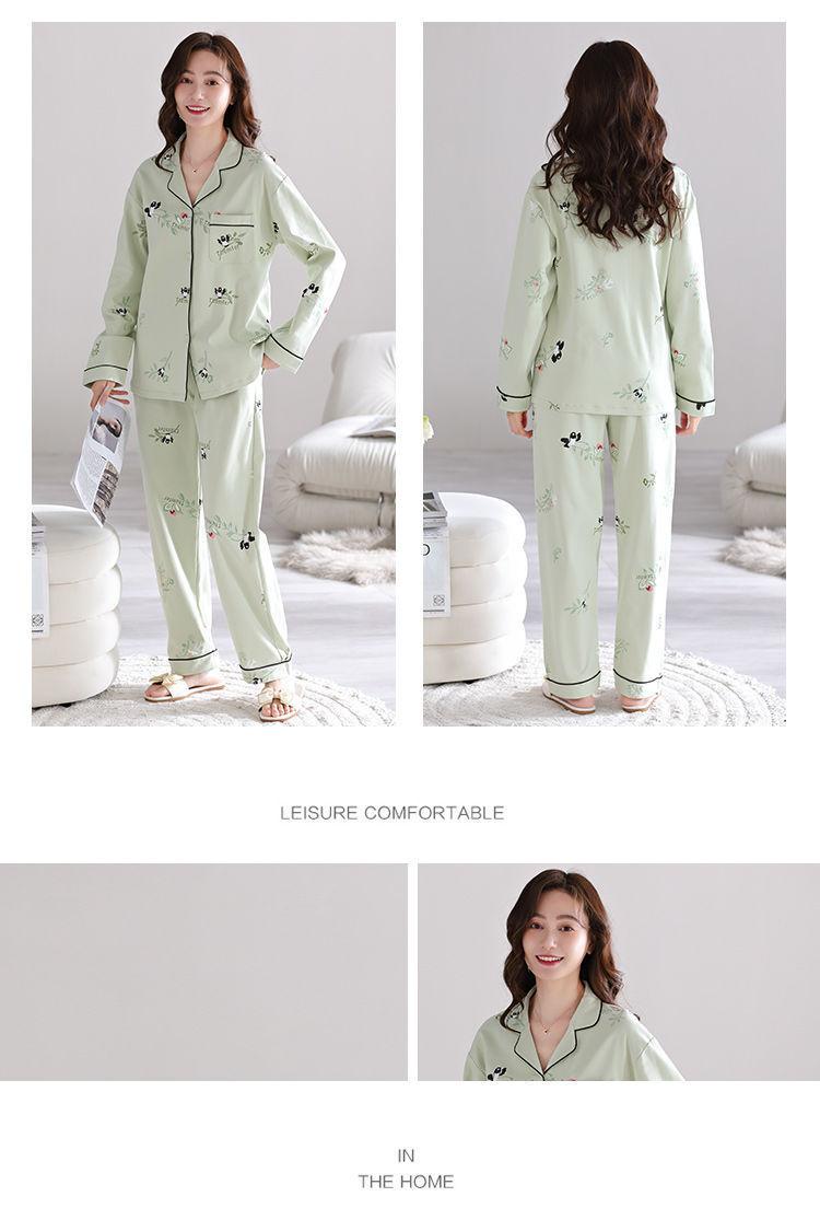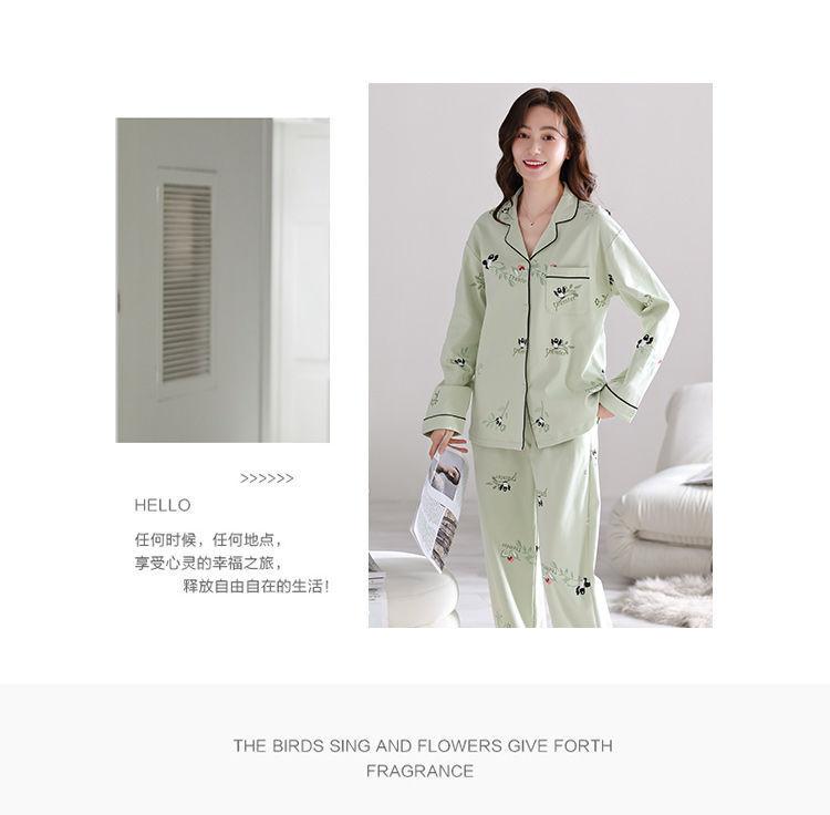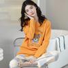 Pijama de Algodón para Mujer Nueva Primavera y Otoño Manga Larga Simple Color Sólido Dibujos Animados Solapa Otoño Ropa para el Hogar Traje
