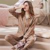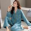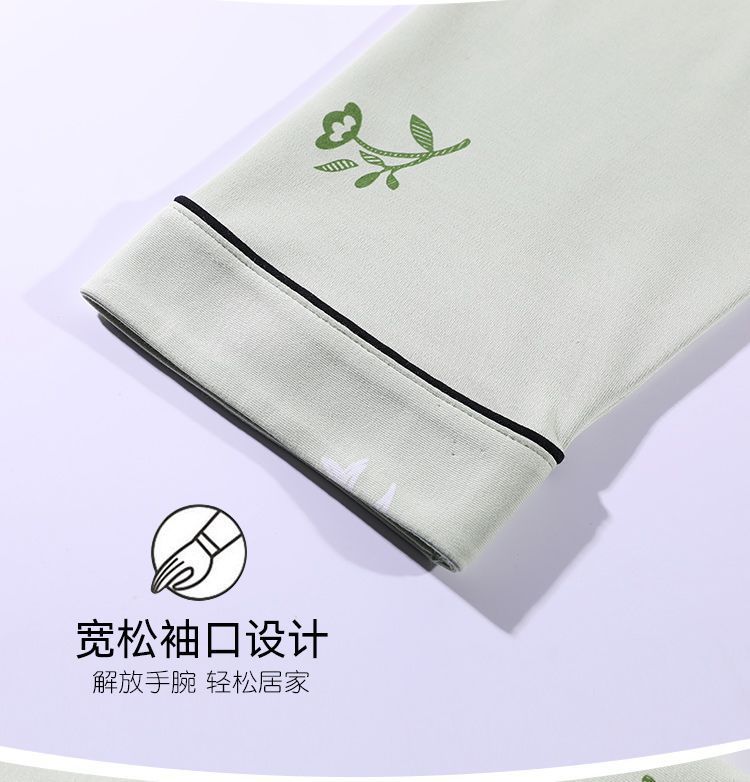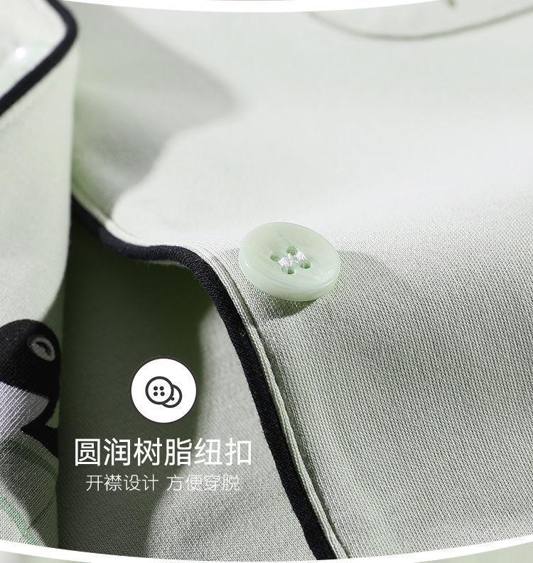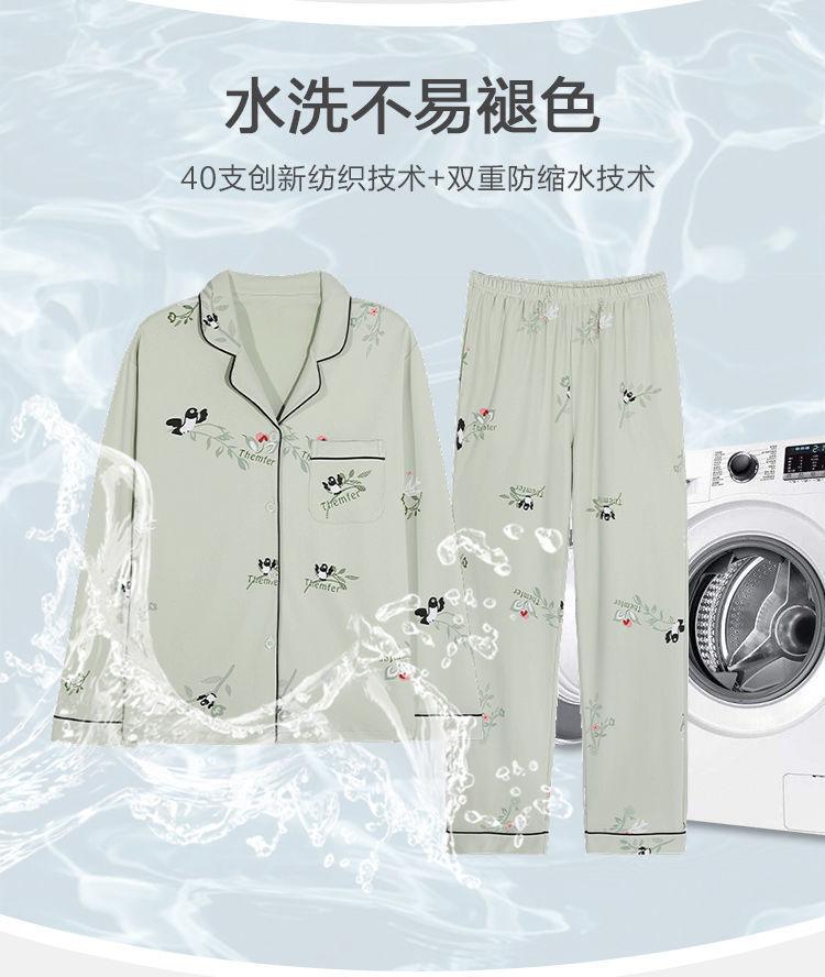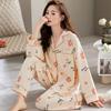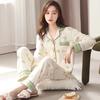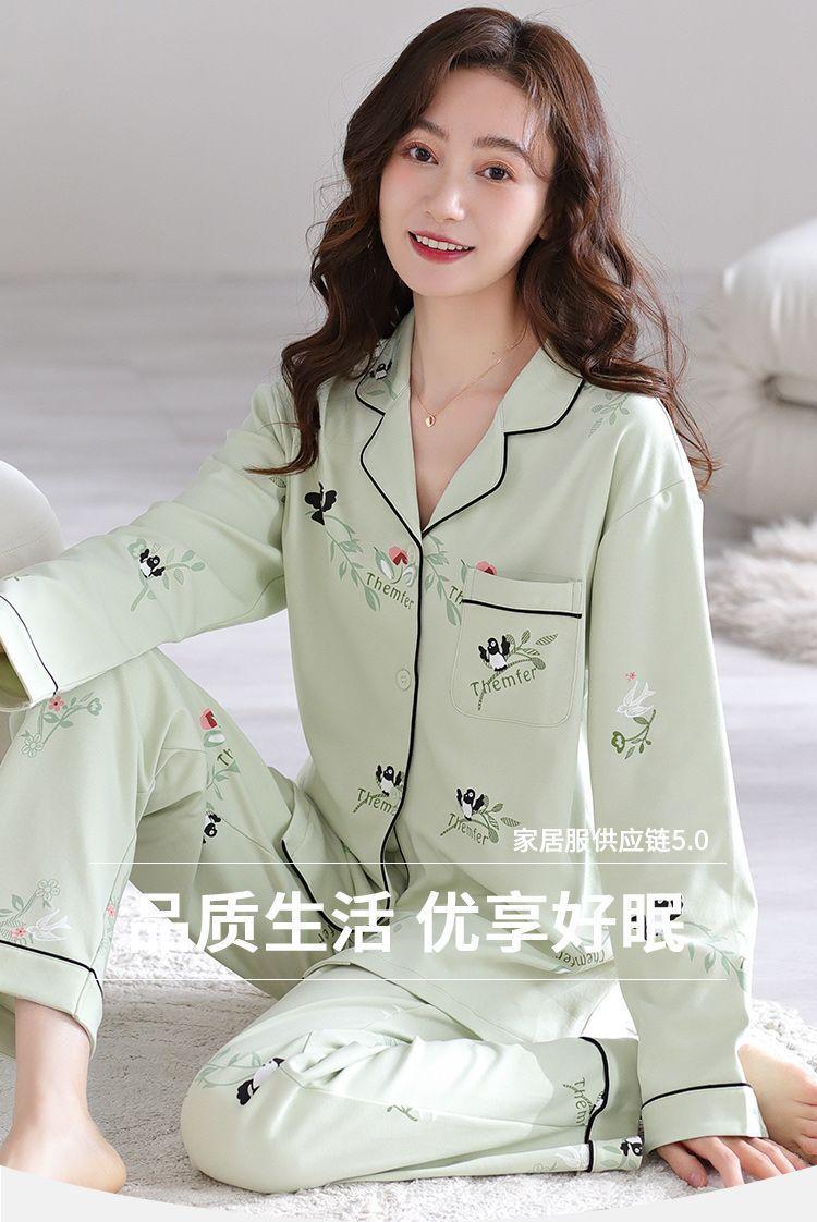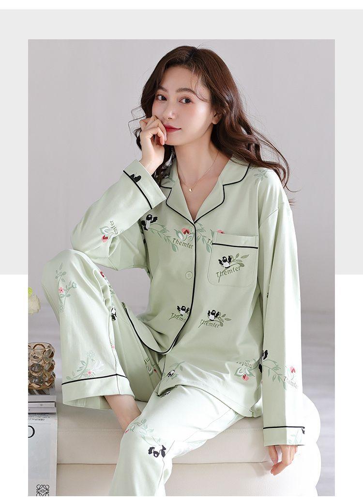 Pijama de Algodón para Mujer Nueva Primavera y Otoño Manga Larga Simple Color Sólido Dibujos Animados Solapa Otoño Ropa para el Hogar Traje