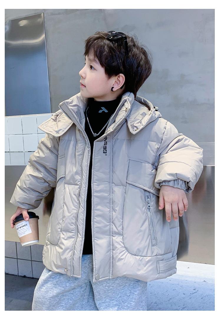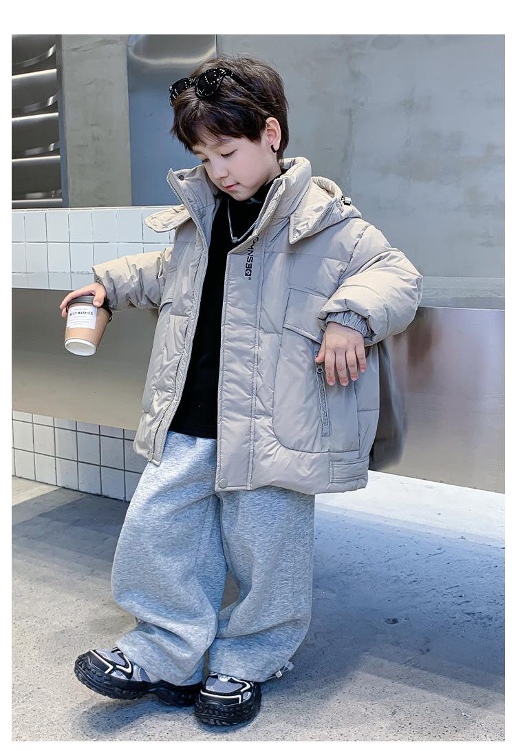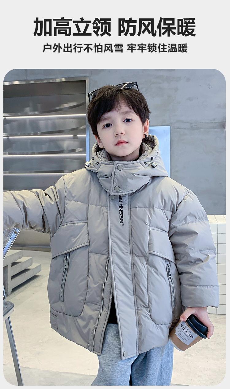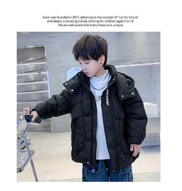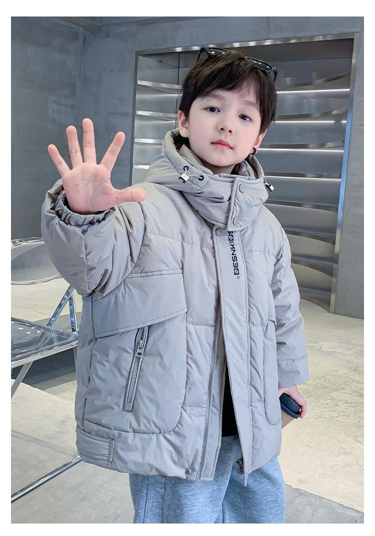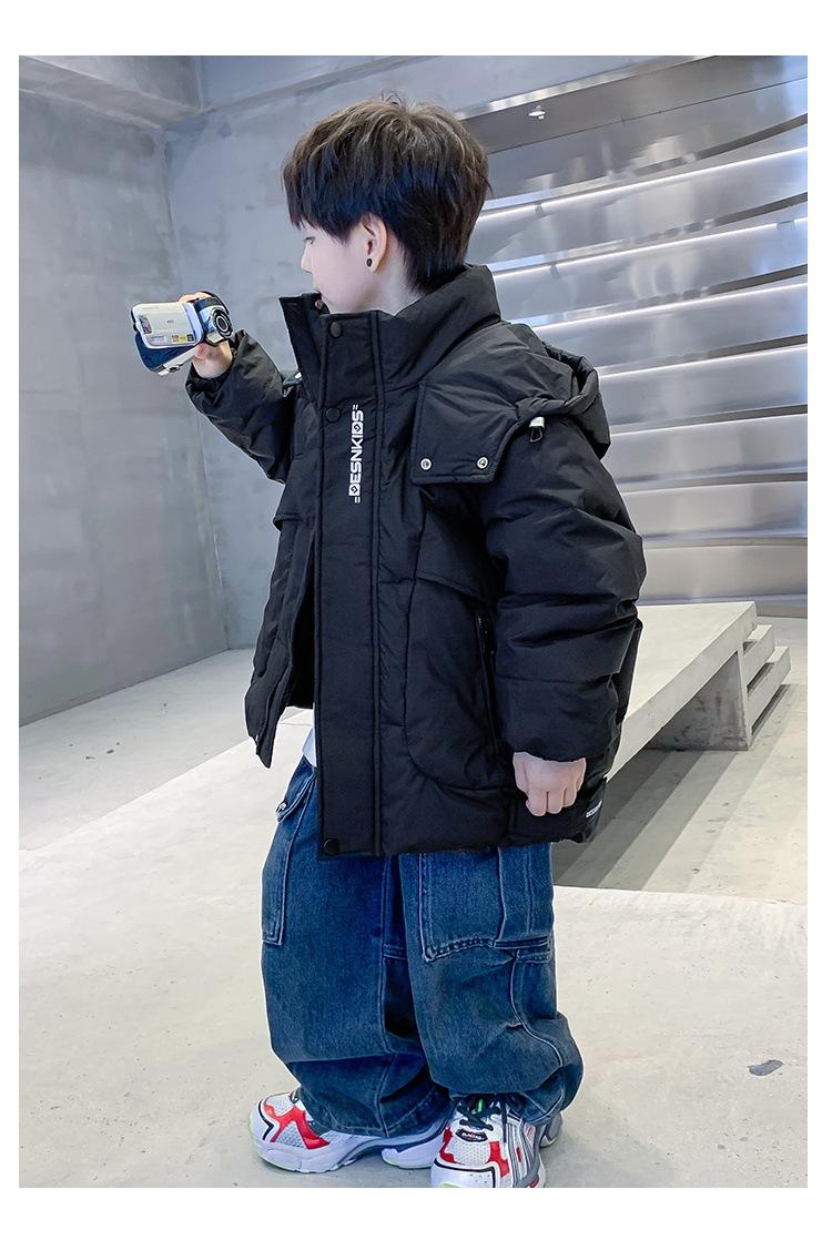 Ropa de invierno para niños con relleno de algodón, chaqueta de plumón de pato blanca cálida y gruesa, ropa de invierno con capucha atractiva para niños de talla mediana y grande.