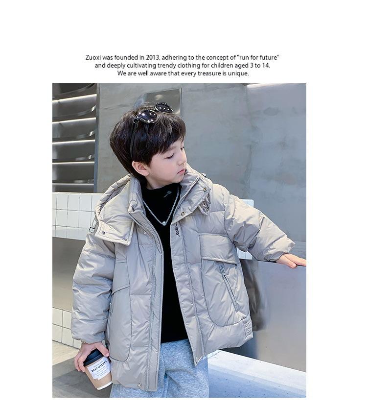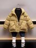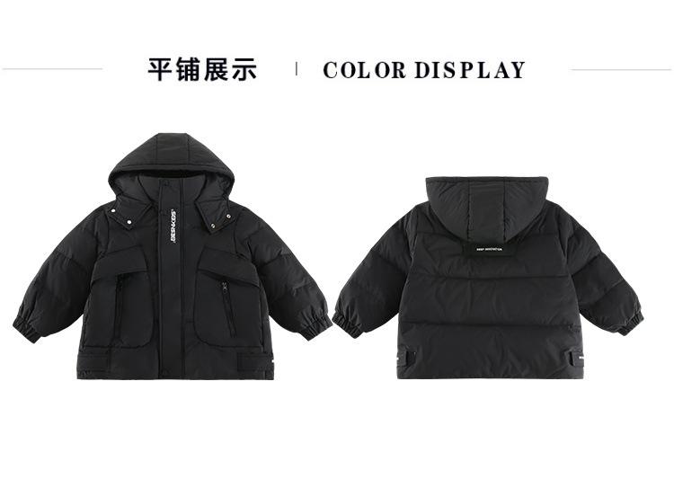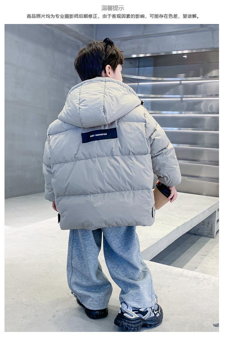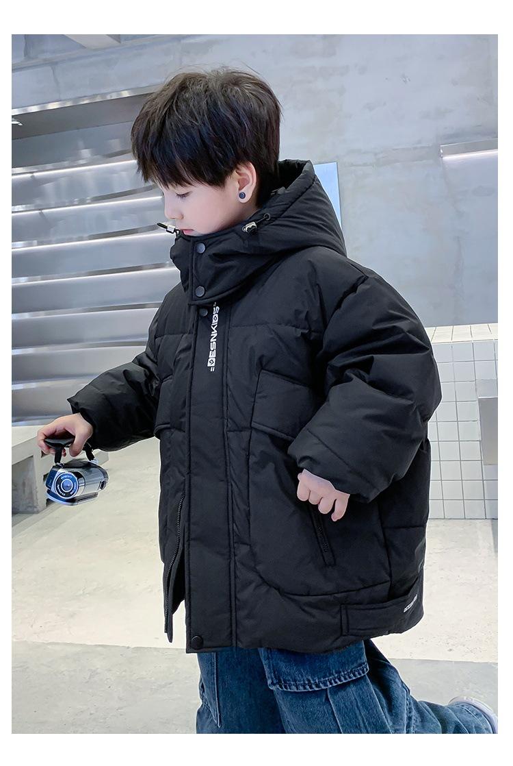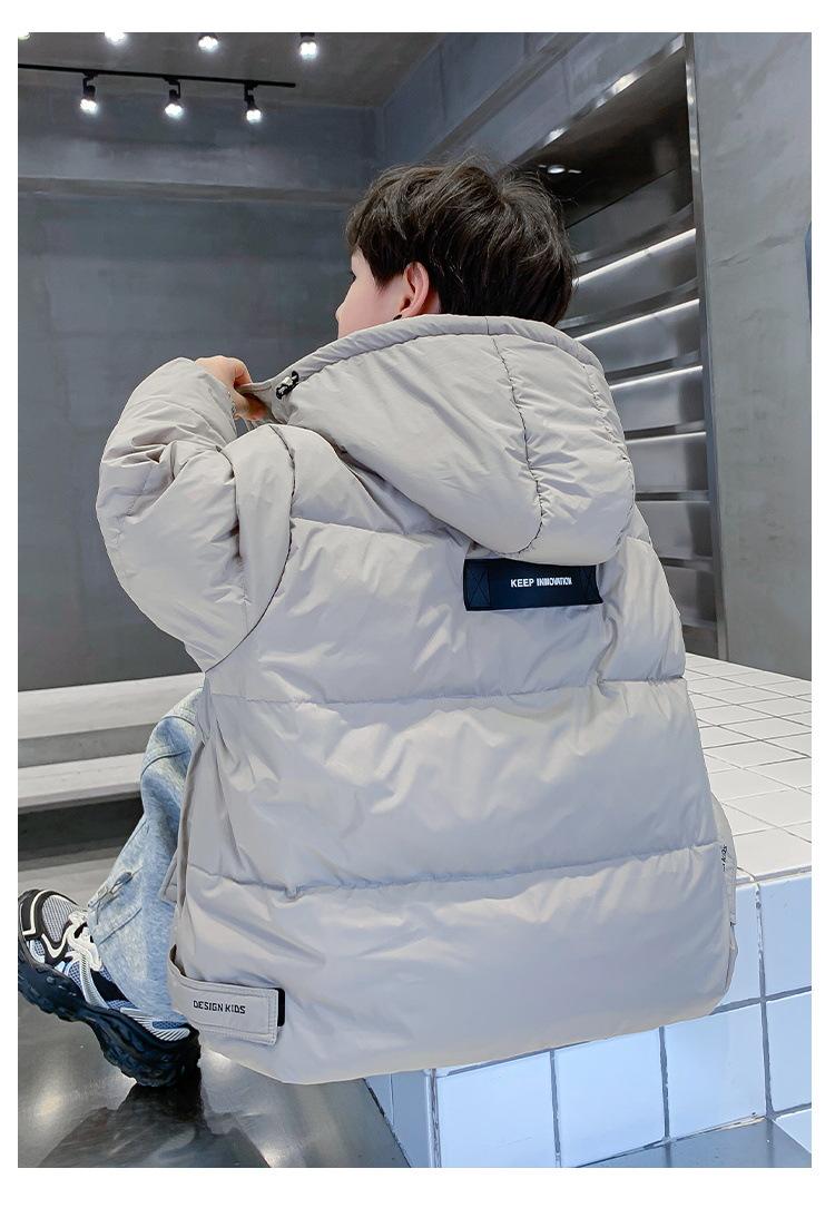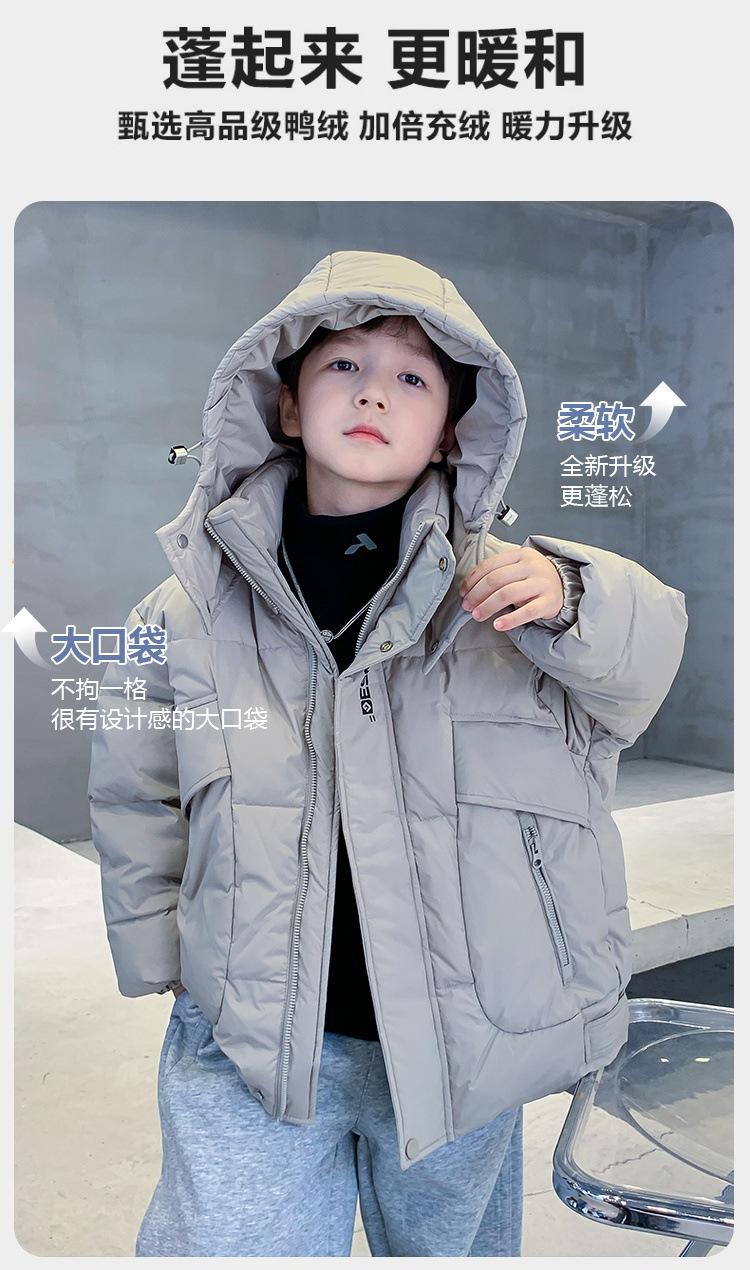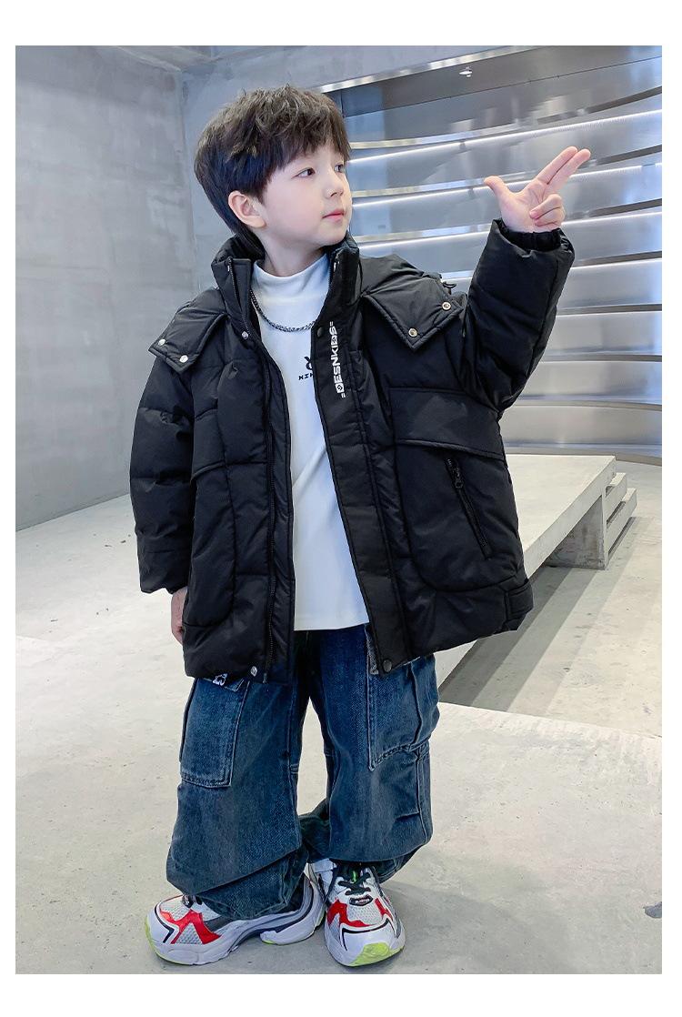 Ropa de invierno para niños con relleno de algodón, chaqueta de plumón de pato blanca cálida y gruesa, ropa de invierno con capucha atractiva para niños de talla mediana y grande.