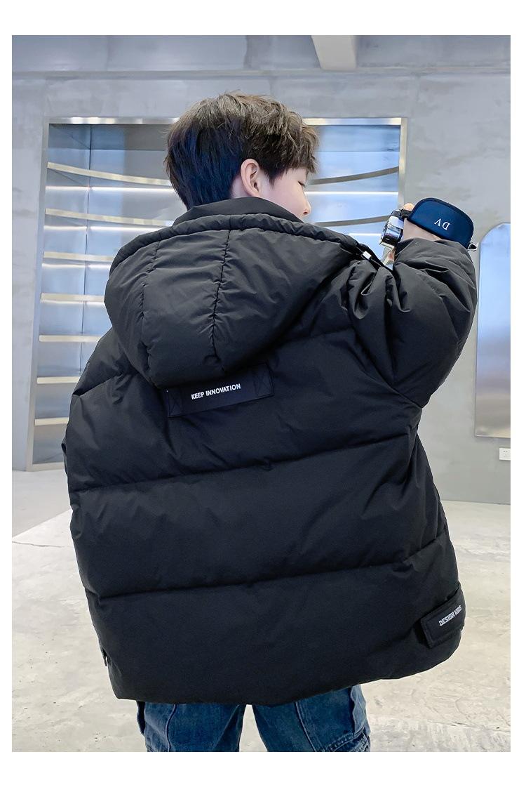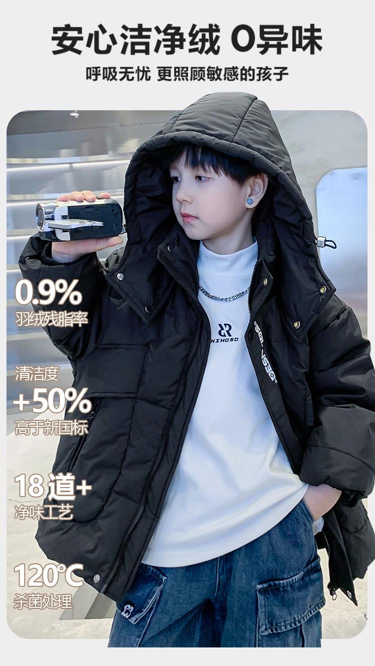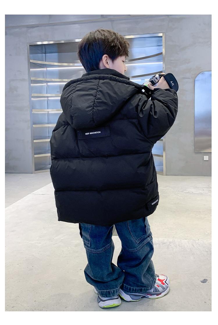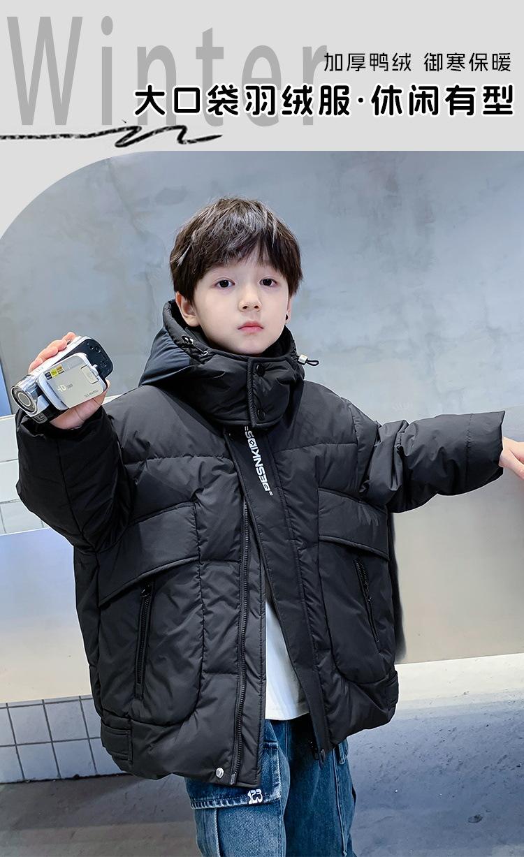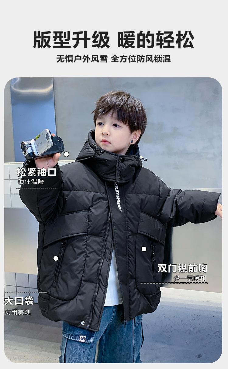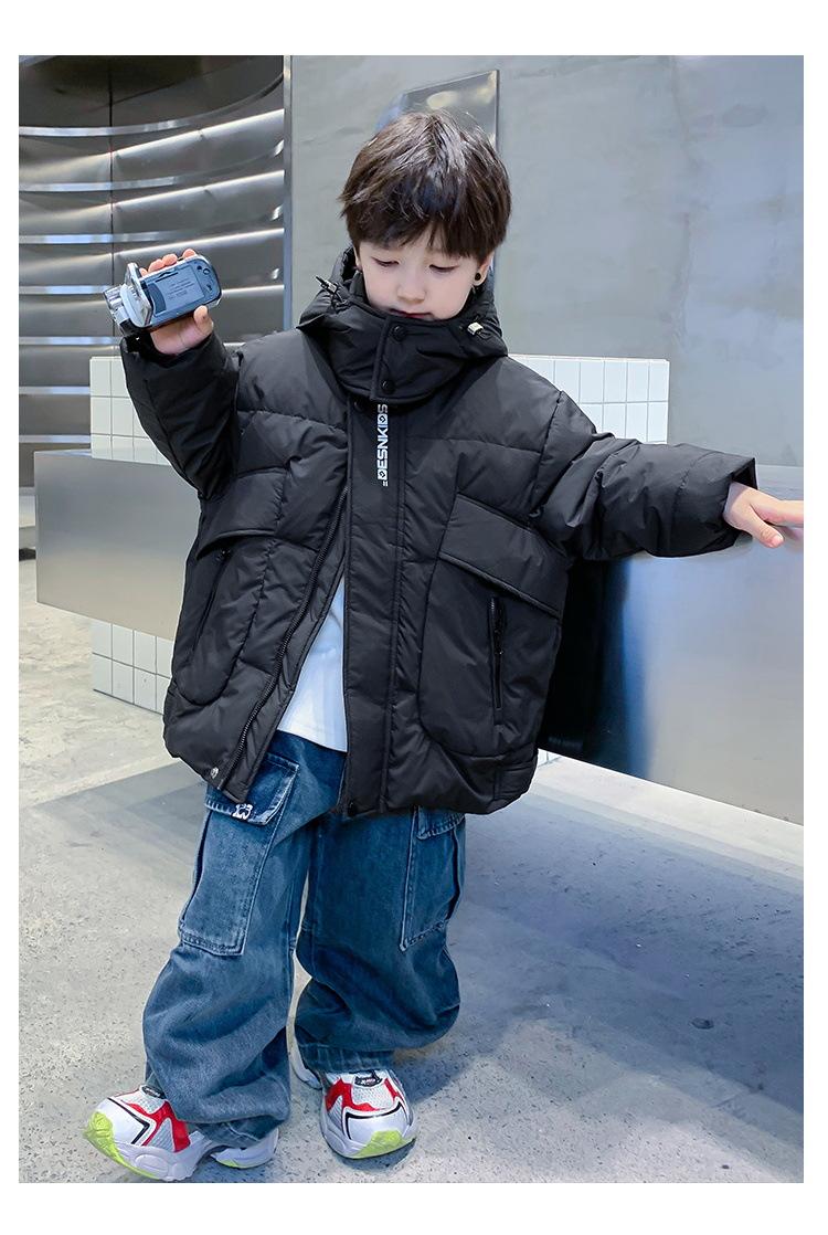 Ropa de invierno para niños con relleno de algodón, chaqueta de plumón de pato blanca cálida y gruesa, ropa de invierno con capucha atractiva para niños de talla mediana y grande.