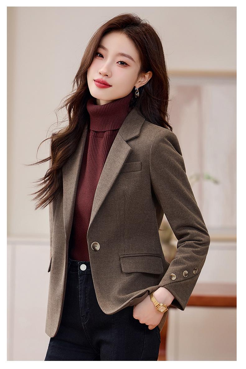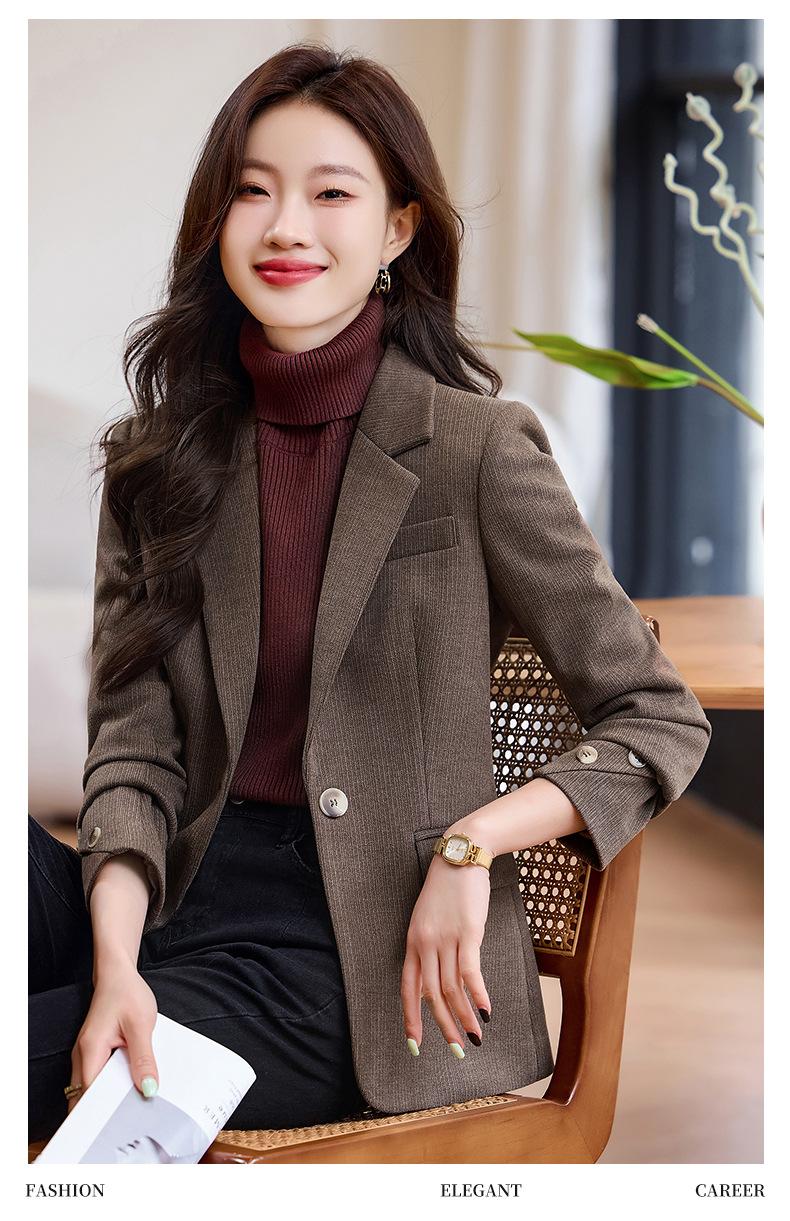 Chaqueta de traje marrón para mujer de alta gama primavera y otoño 2024 Nueva chaqueta de traje elegante y ajustada para mujer popular este año