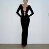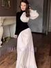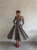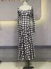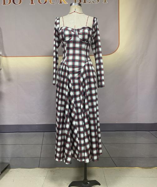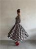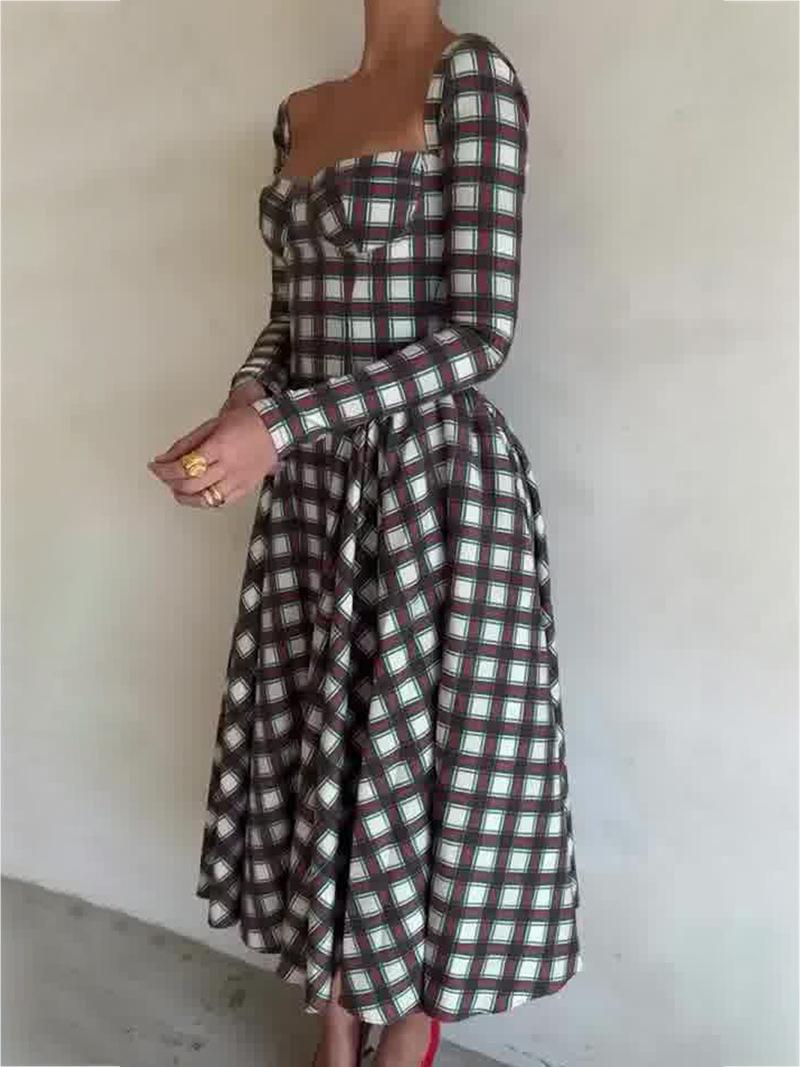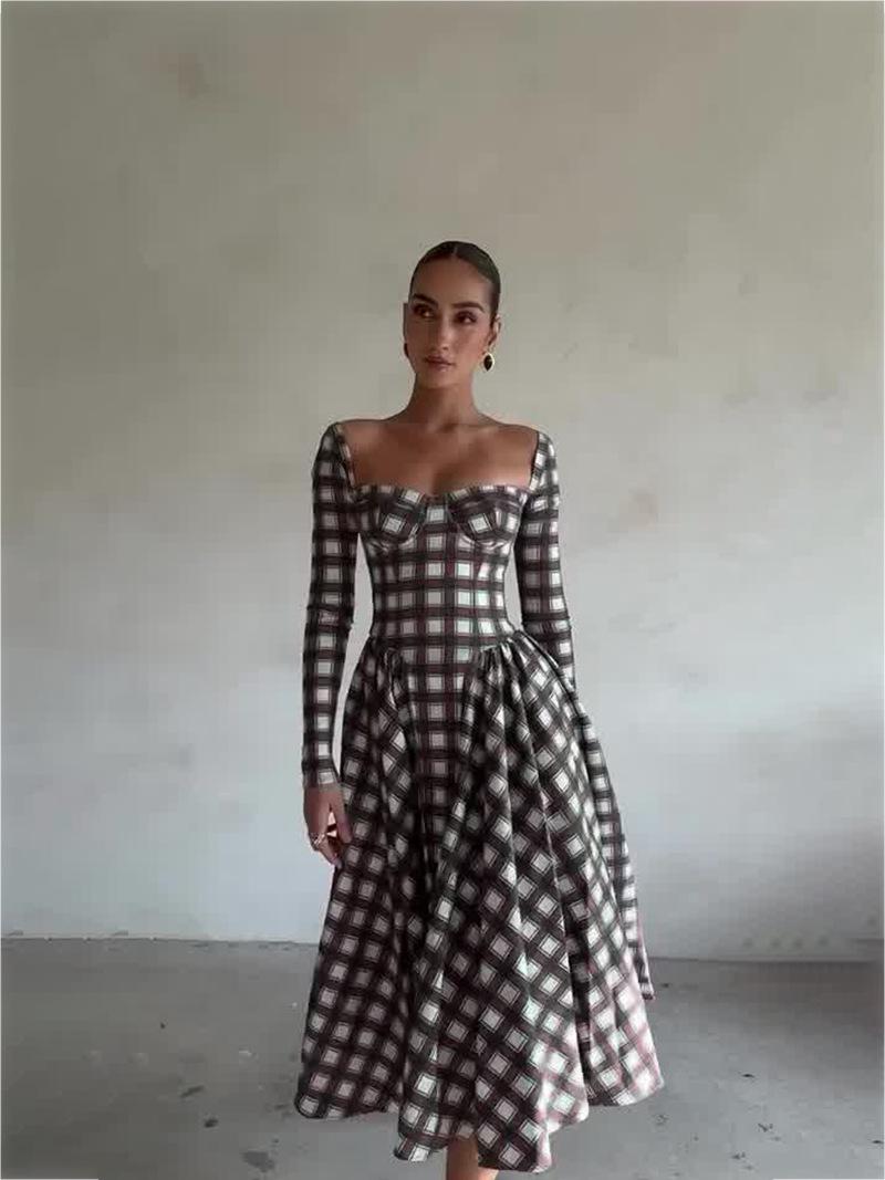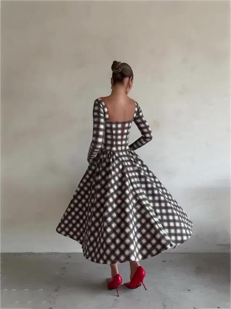 Vestido retro con cuello en U y manga larga a cuadros para mujer, estilo europeo y americano, otoño 2023, transfronterizo de Amazon