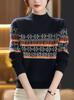 Top corto de punto rojo de cuello alto para mujer, otoño e invierno 2024, nueva camisa básica de estilo occidental para mujer