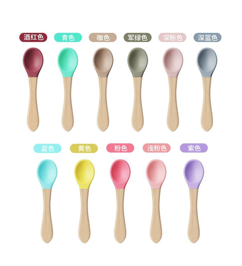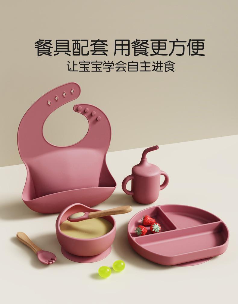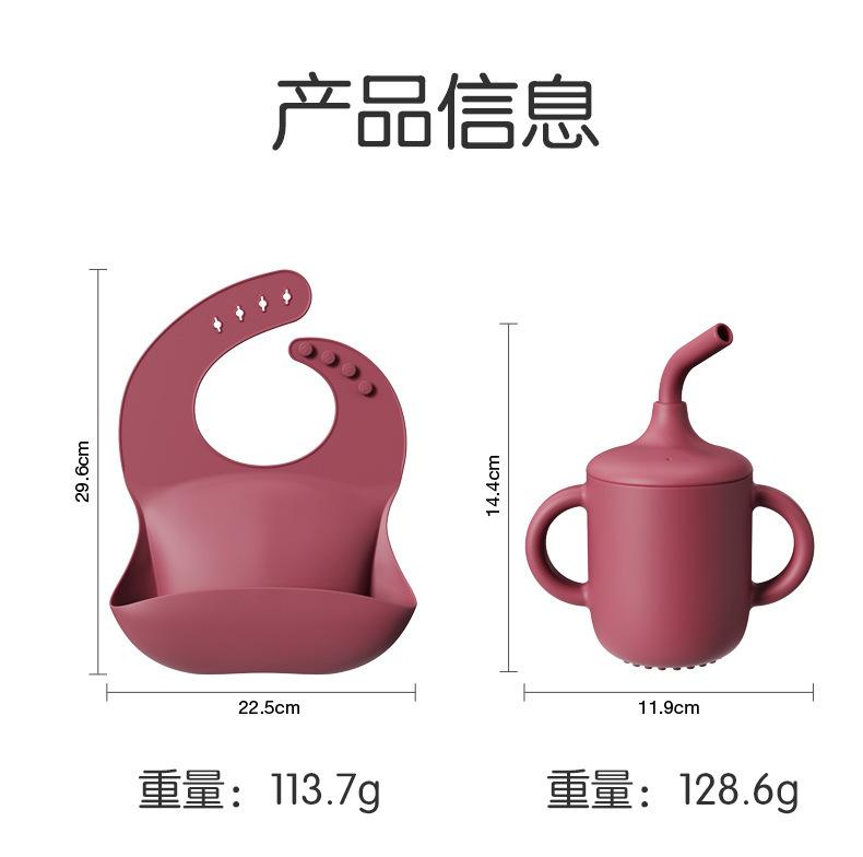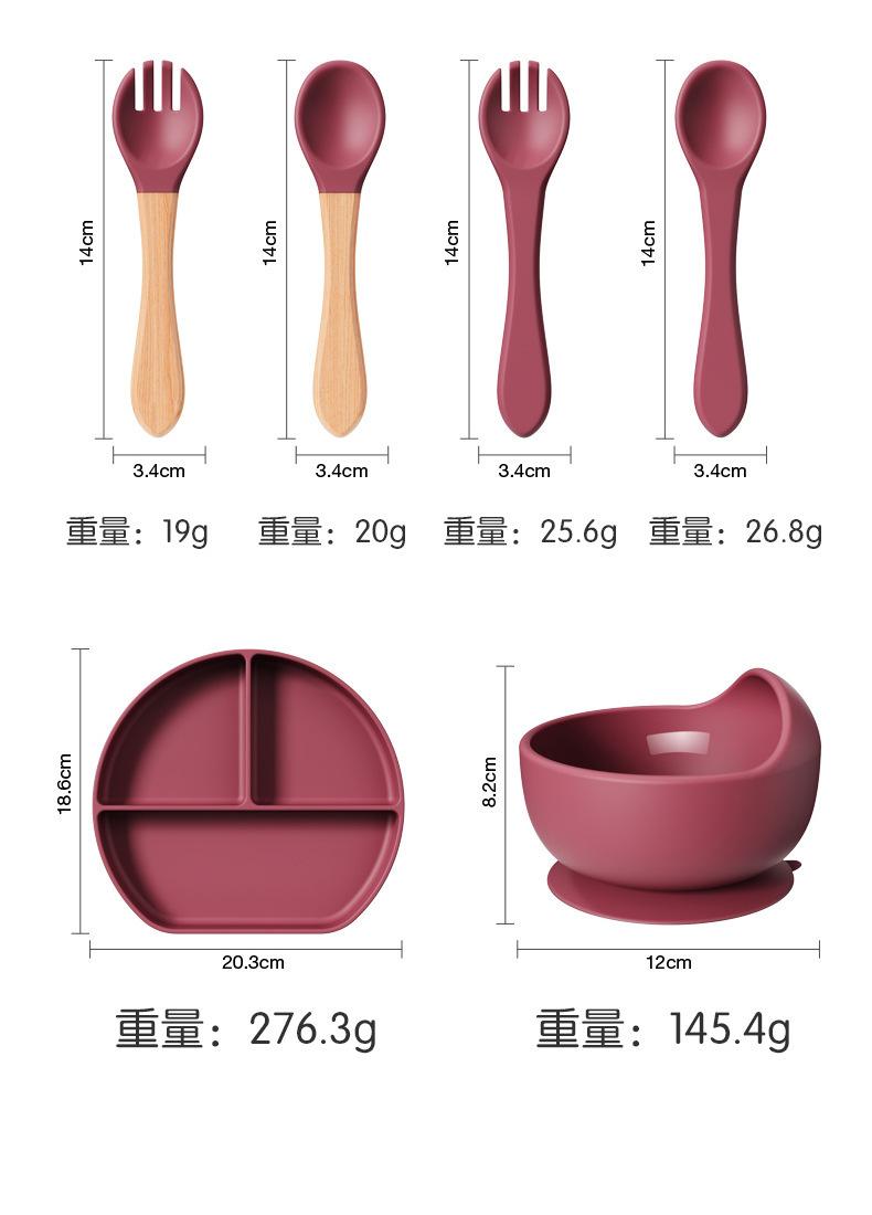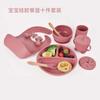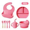 6-piece set (bowl + water cup + bib + dinner plate + wooden handle fork and spoon) 11 colors available