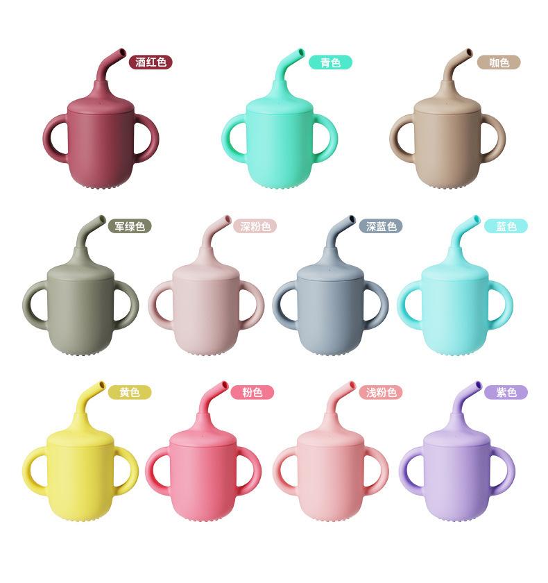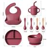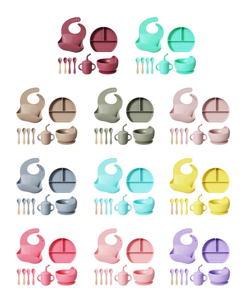 6-piece set (bowl + water cup + bib + dinner plate + full silicone fork and spoon) 11 colors available