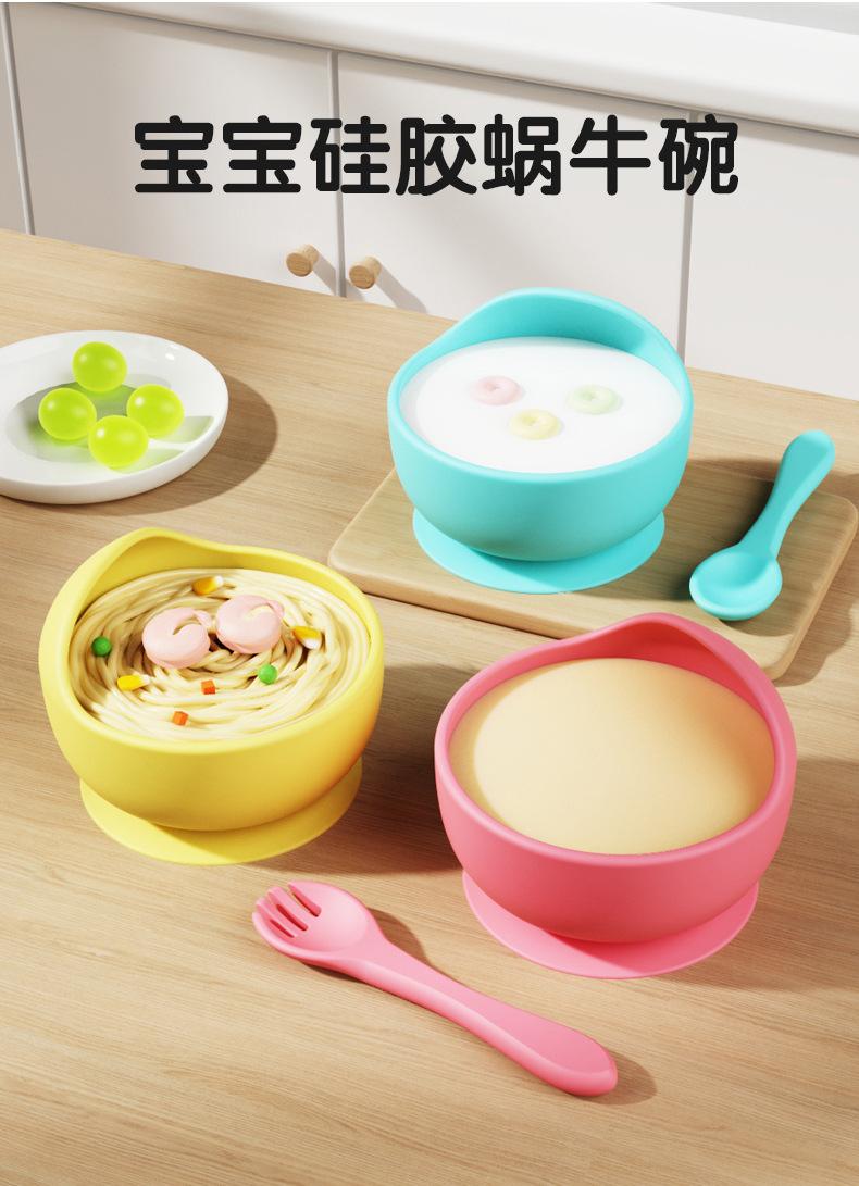 Cuenco de silicona con forma de caracol para bebé, vajilla infantil, tenedor, cuenco complementario para alimentos, cuenco con ventosa para comer, cuchara de entrenamiento para bebé, plato para la cena