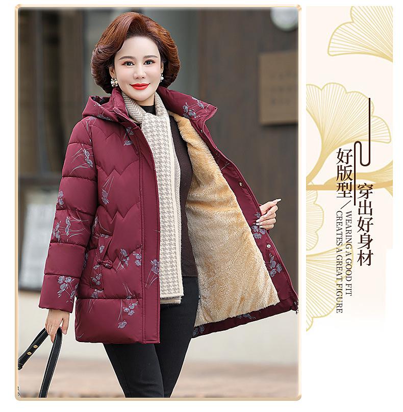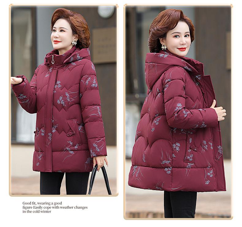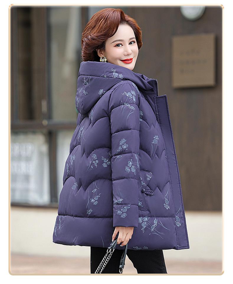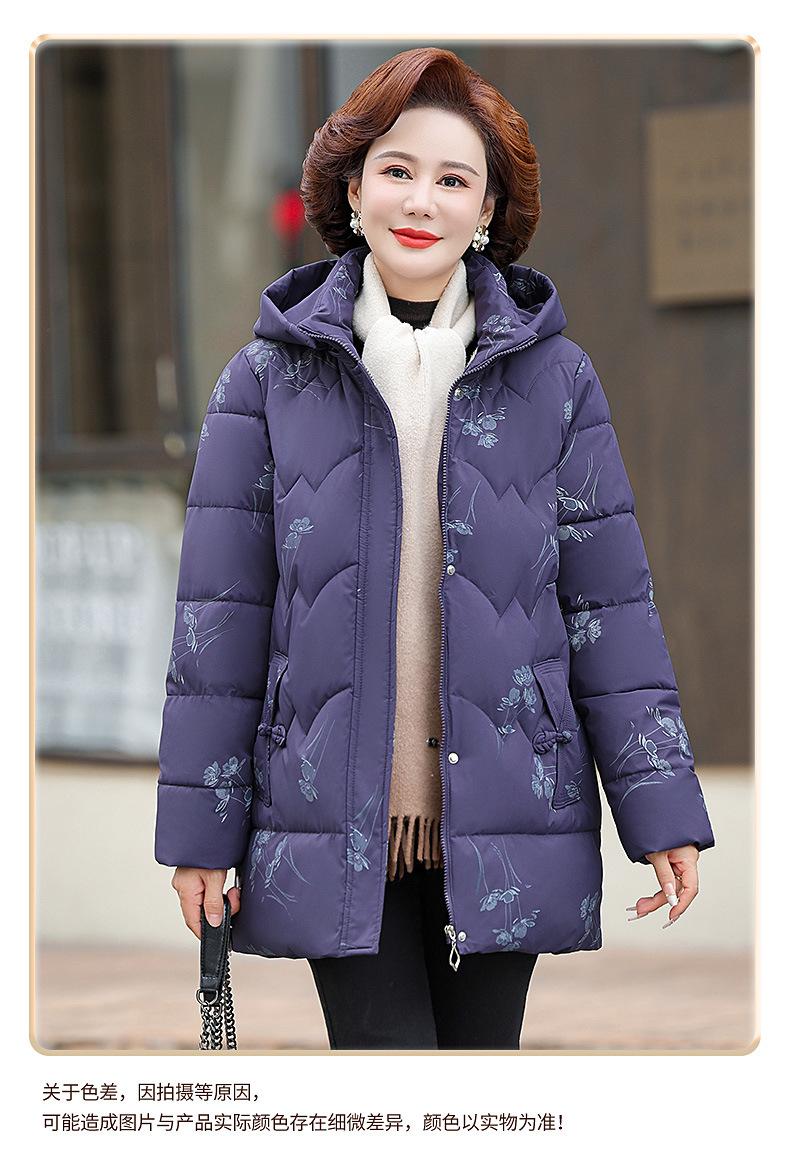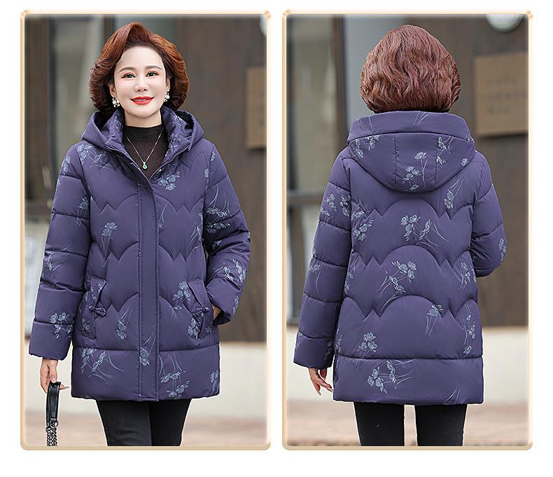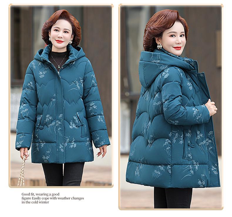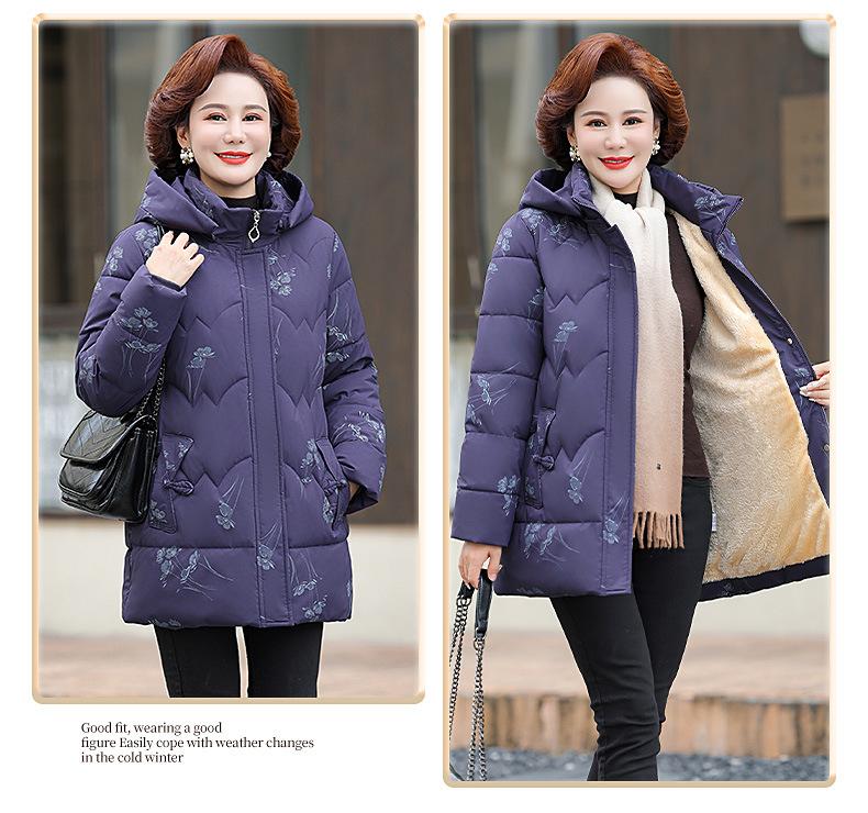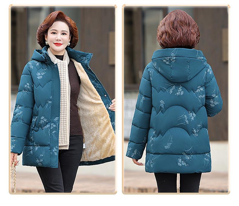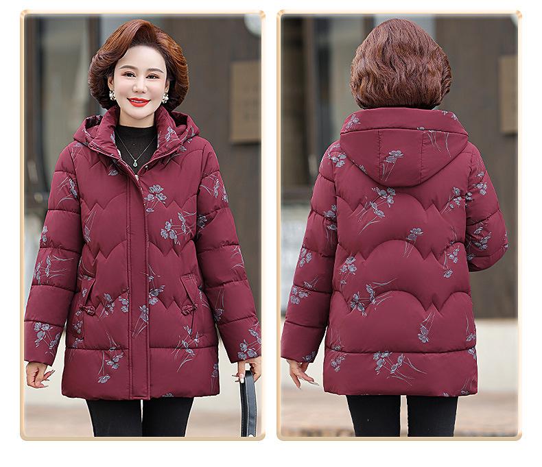 Abrigo de algodón grueso con forro polar para madres, ropa de invierno, abrigo de plumón de algodón de longitud media para mujeres de mediana edad y mayores, abrigo de algodón cálido estilo occidental.