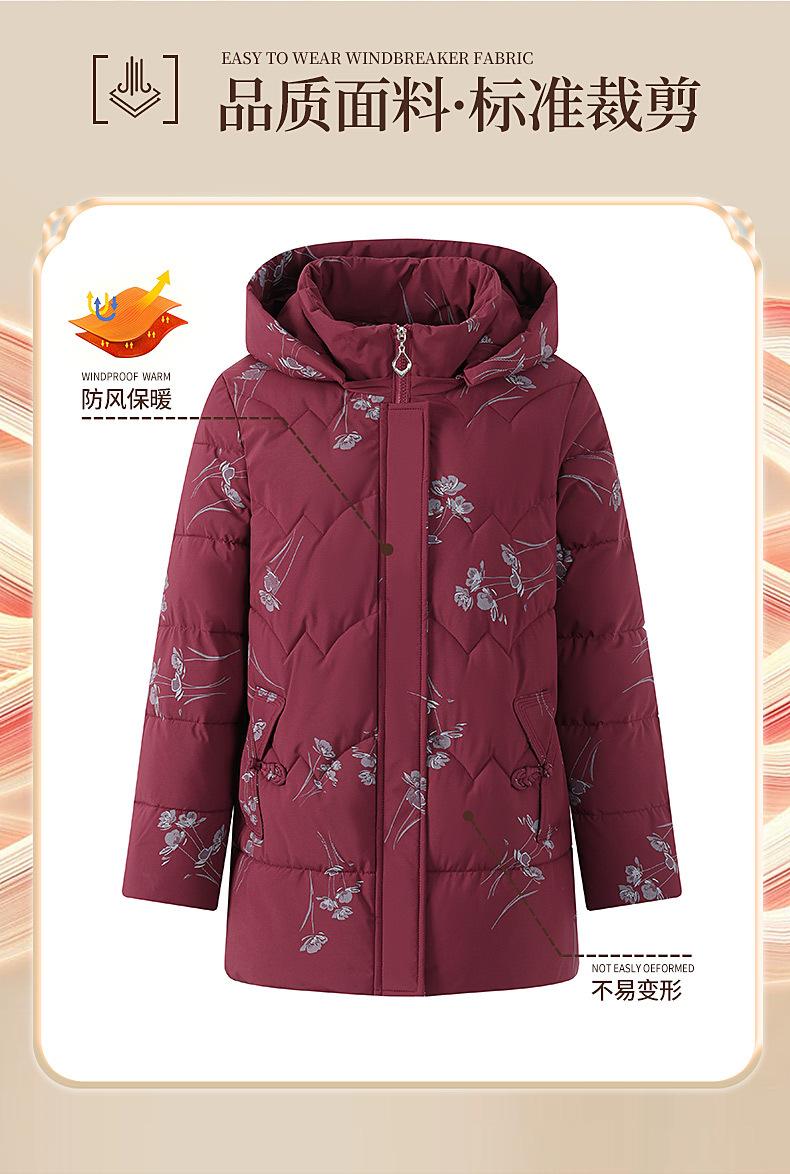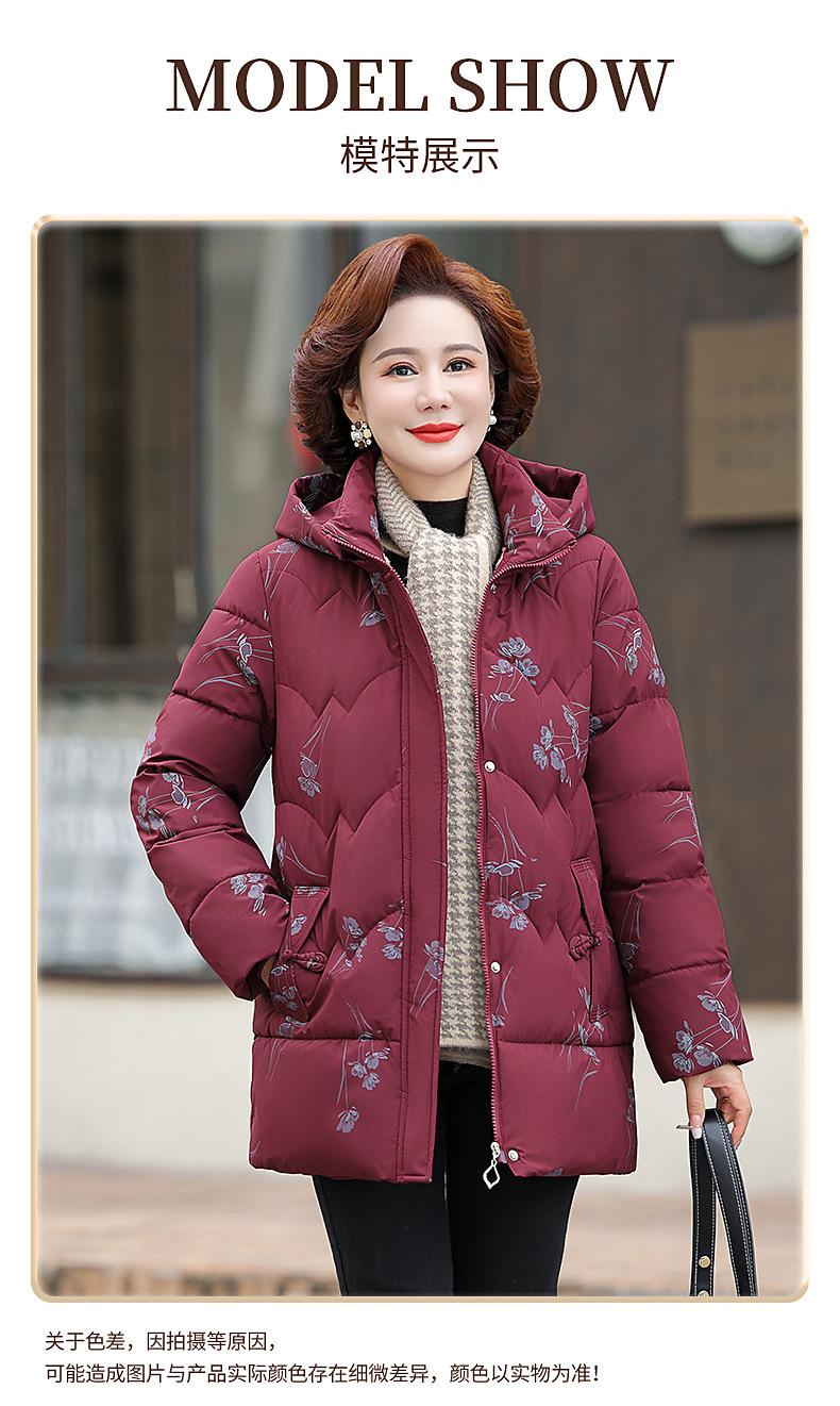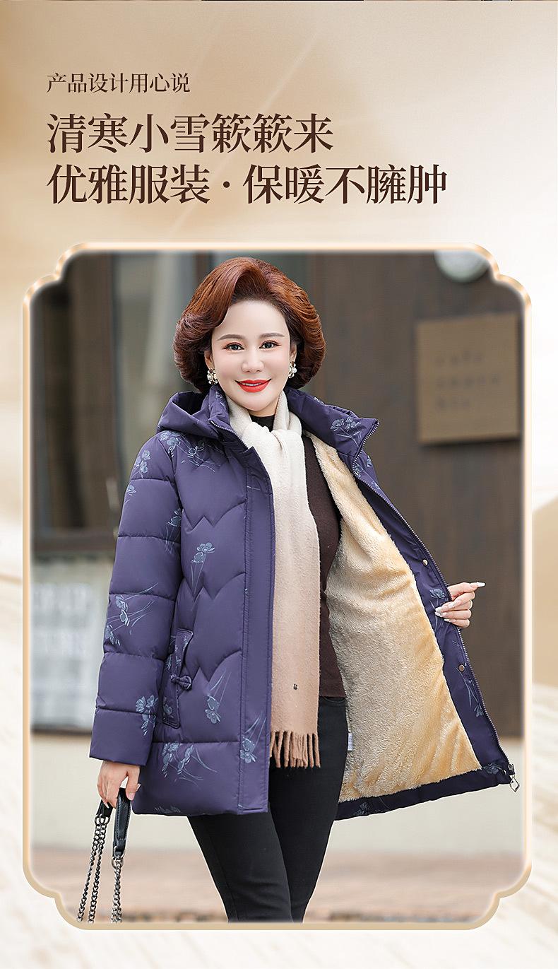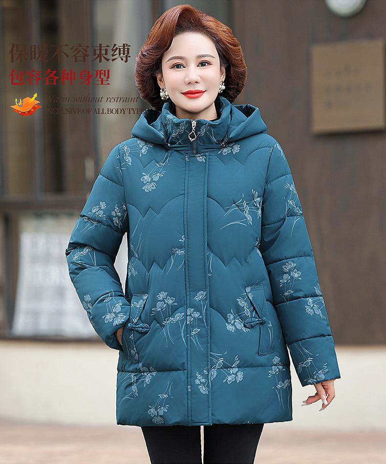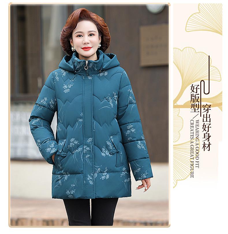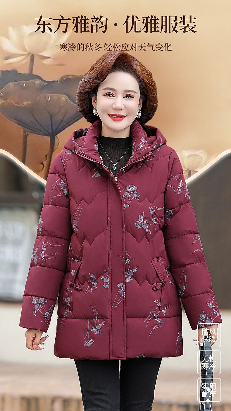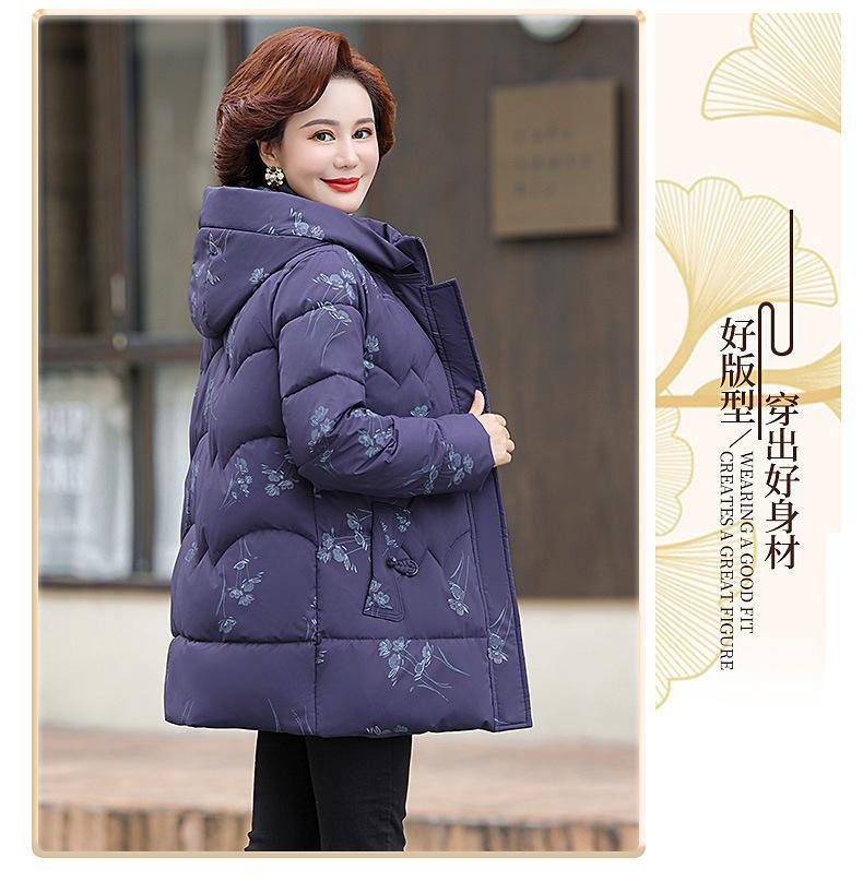 Abrigo de algodón grueso con forro polar para madres, ropa de invierno, abrigo de plumón de algodón de longitud media para mujeres de mediana edad y mayores, abrigo de algodón cálido estilo occidental.