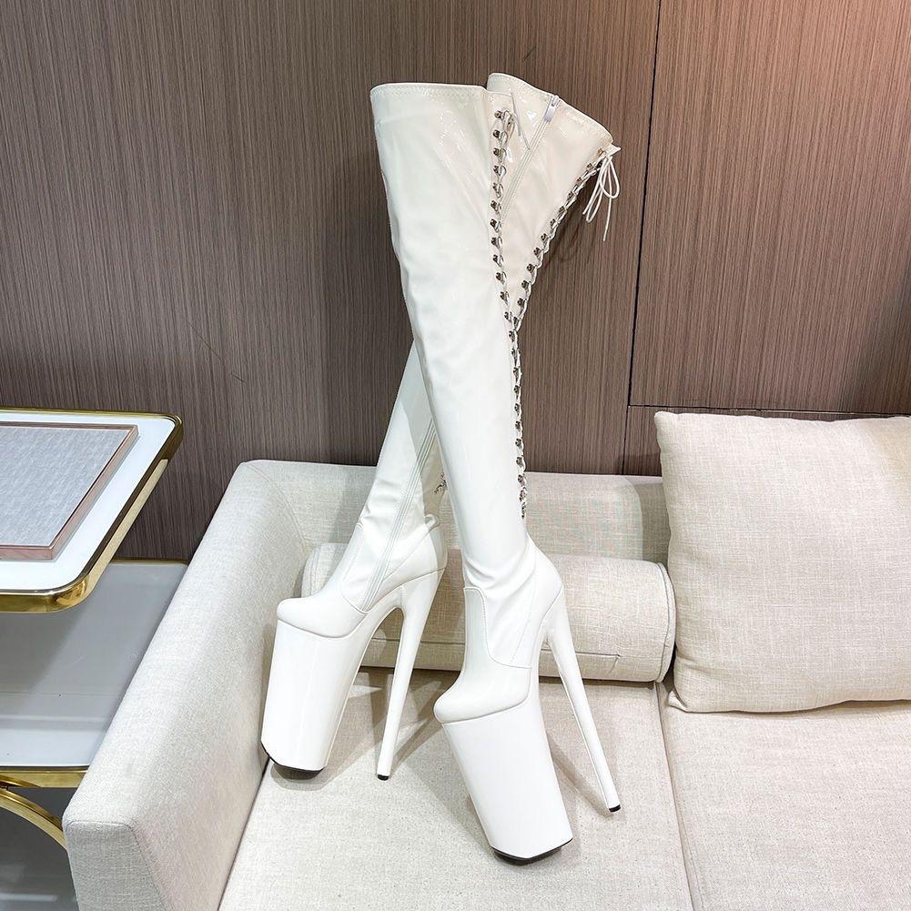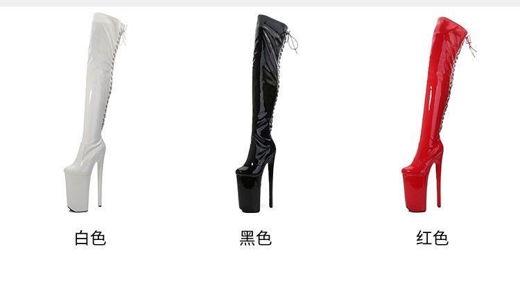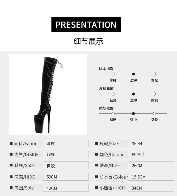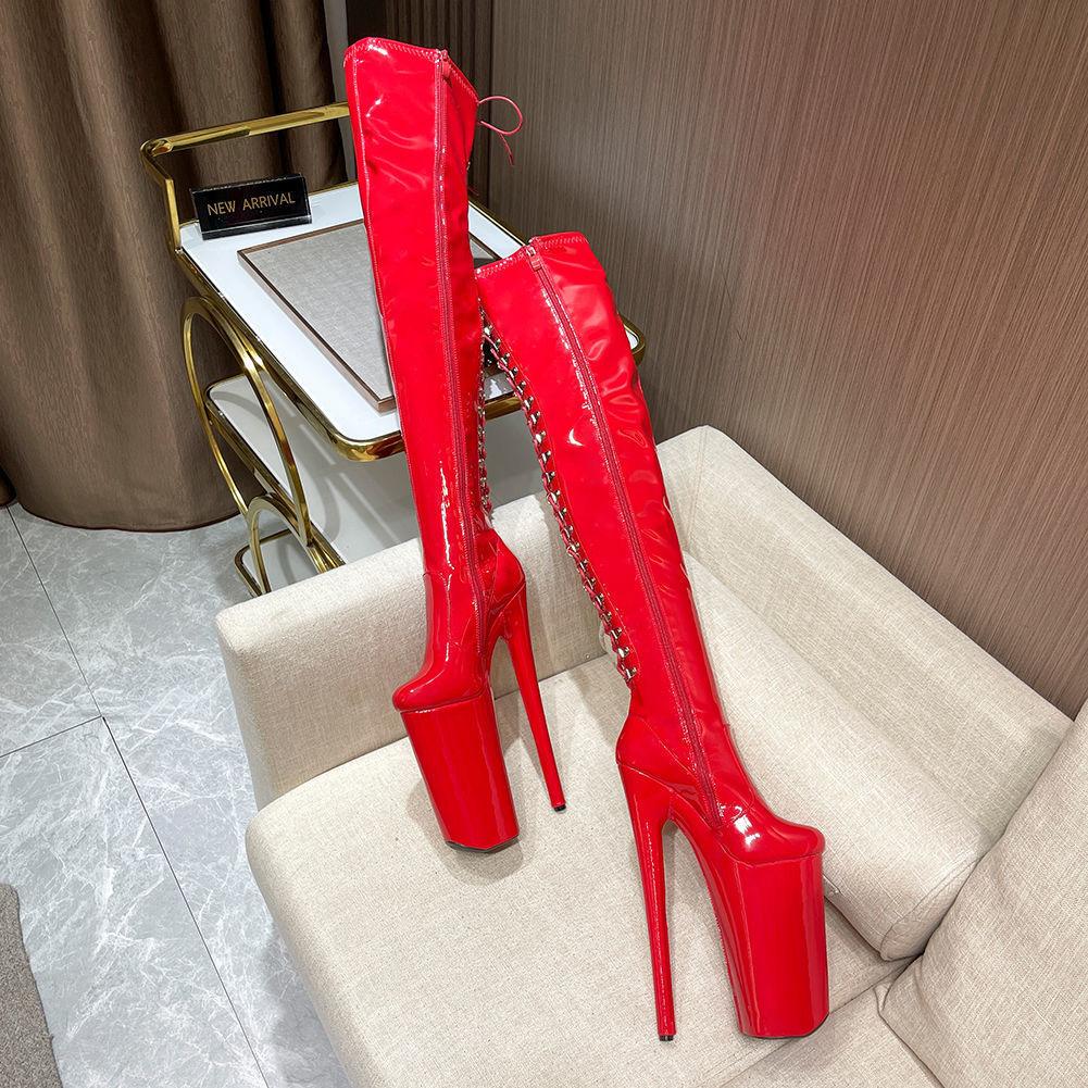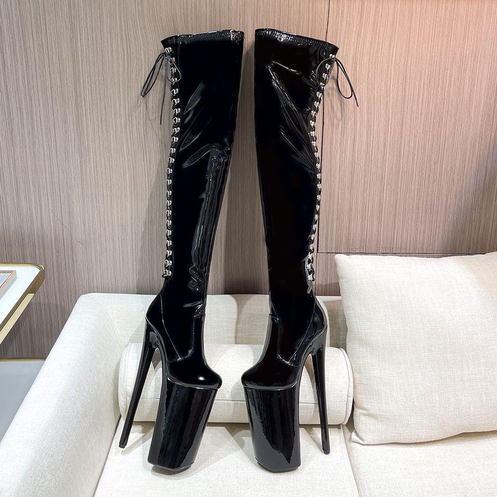 Botas de baile de tubo de acero de 26 cm con tacón súper alto y sexys de estilo europeo y americano, botas de caballero con cremallera de charol, zapatos de gran tamaño para escenarios de discotecas y espectáculos.