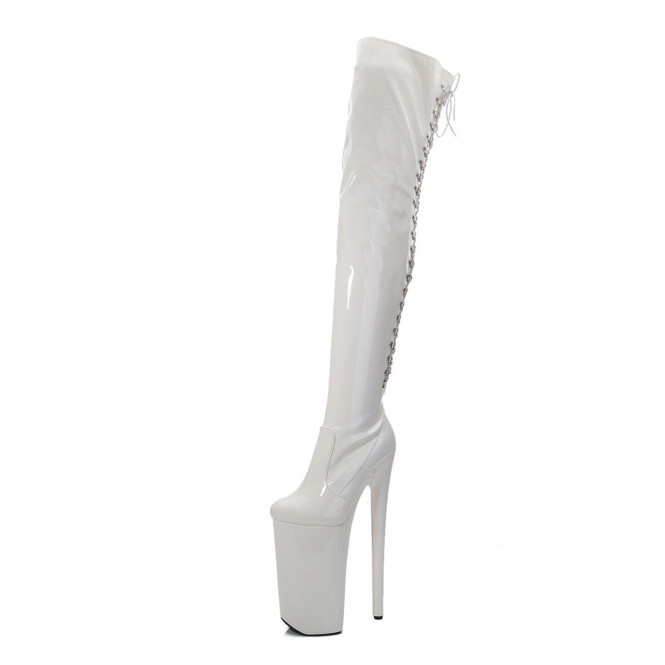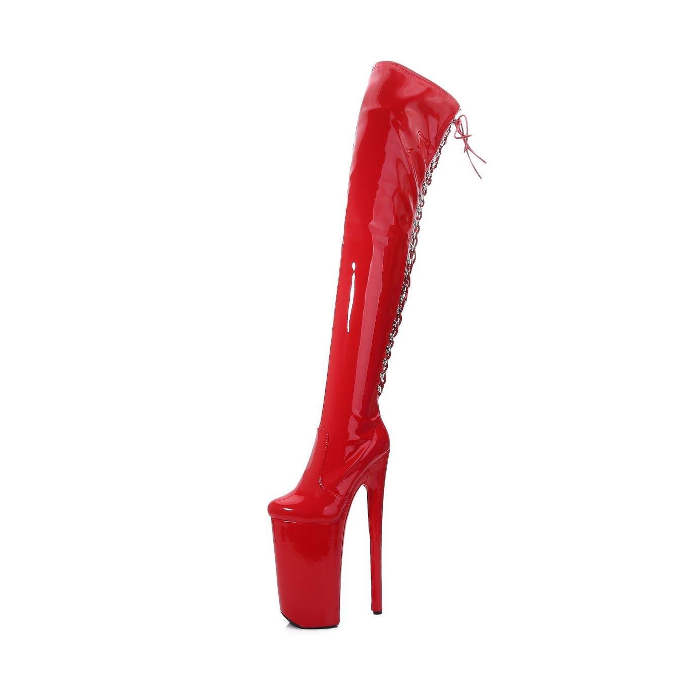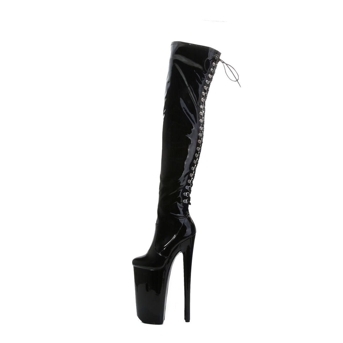 Botas de baile de tubo de acero de 26 cm con tacón súper alto y sexys de estilo europeo y americano, botas de caballero con cremallera de charol, zapatos de gran tamaño para escenarios de discotecas y espectáculos.