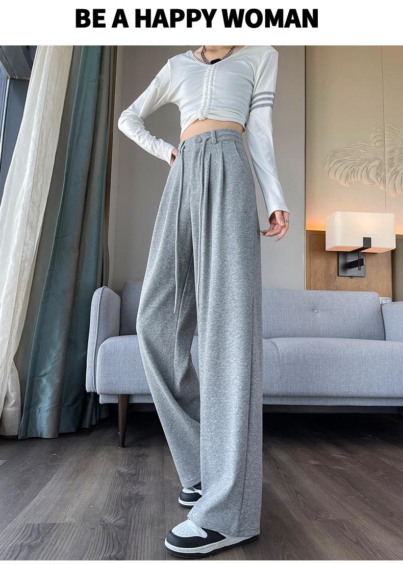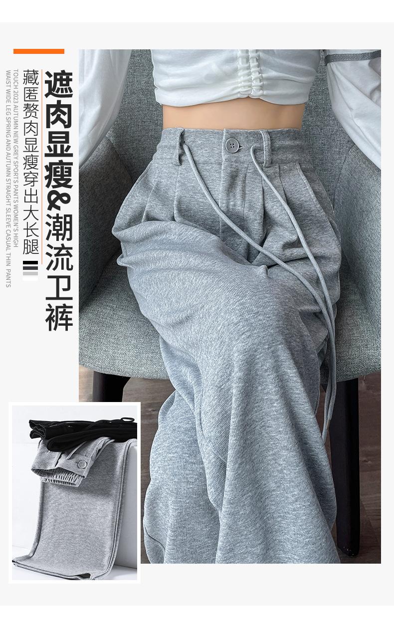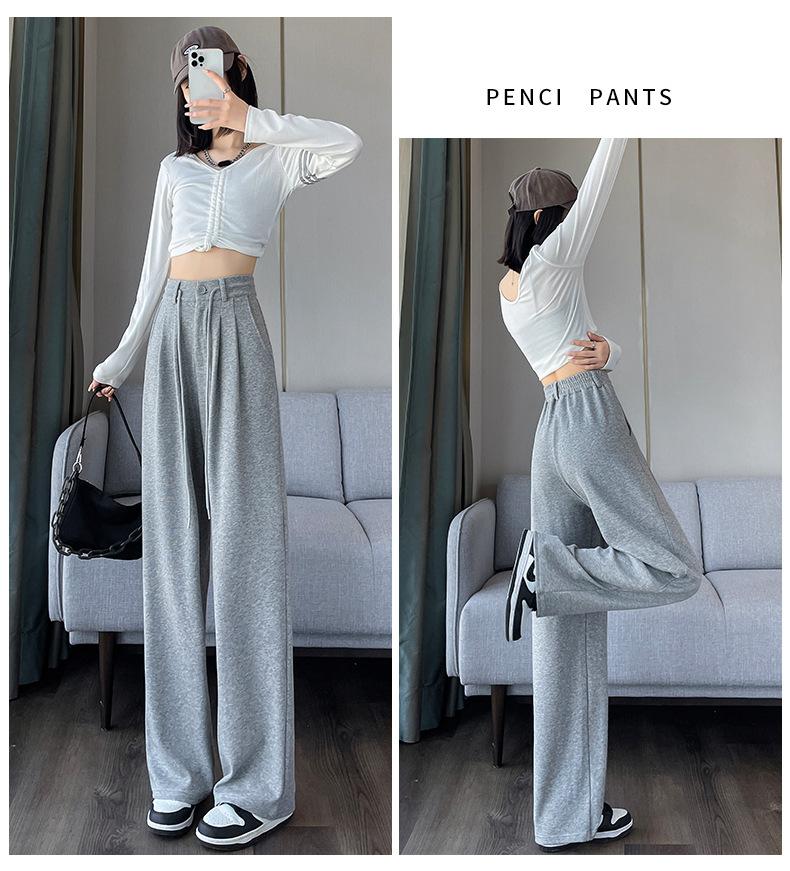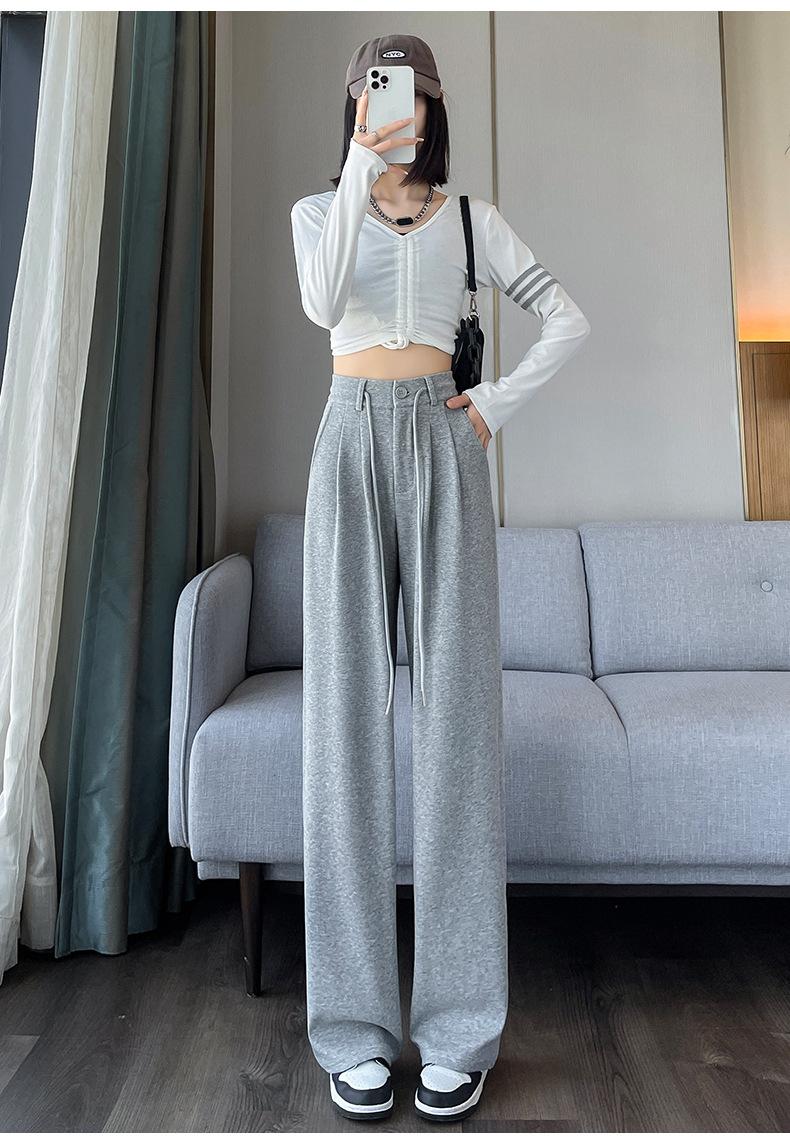 Pantalones deportivos grises americanos para mujer, primavera y otoño, cintura alta, rectos, ajustados, nuevos pantalones de pierna ancha 2025.