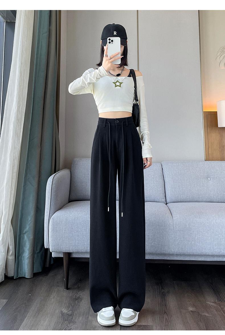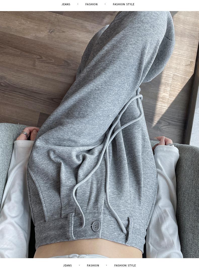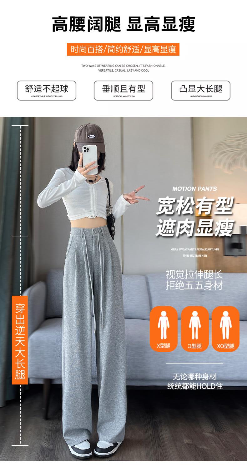 Pantalones deportivos grises americanos para mujer, primavera y otoño, cintura alta, rectos, ajustados, nuevos pantalones de pierna ancha 2025.