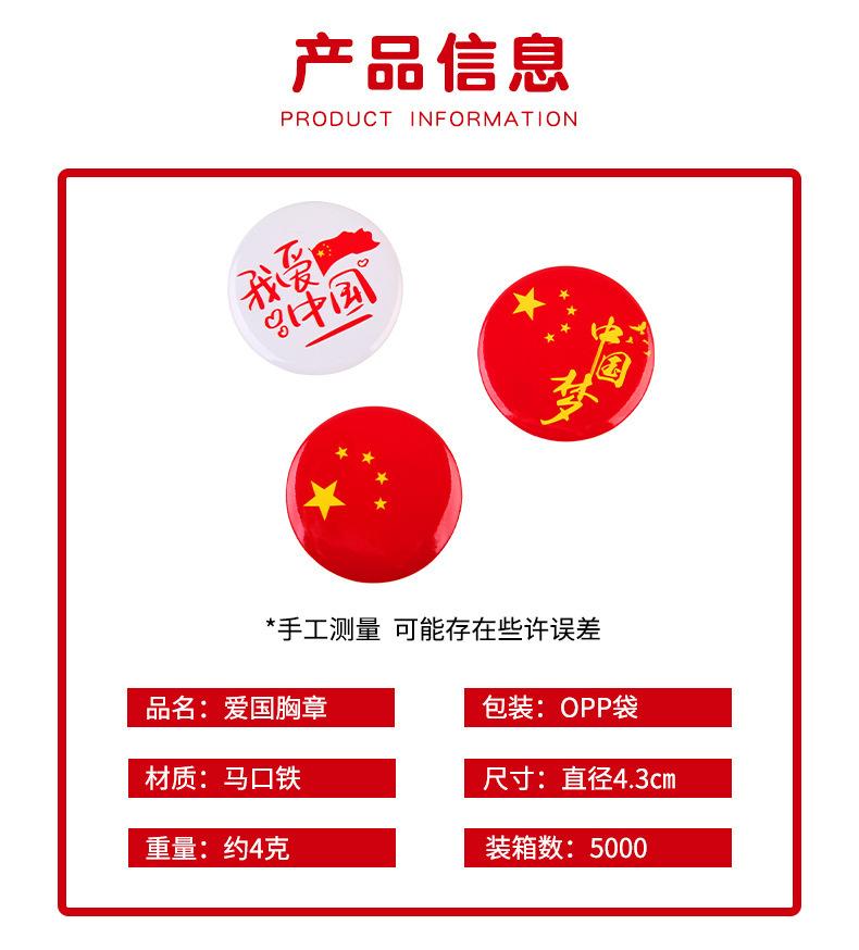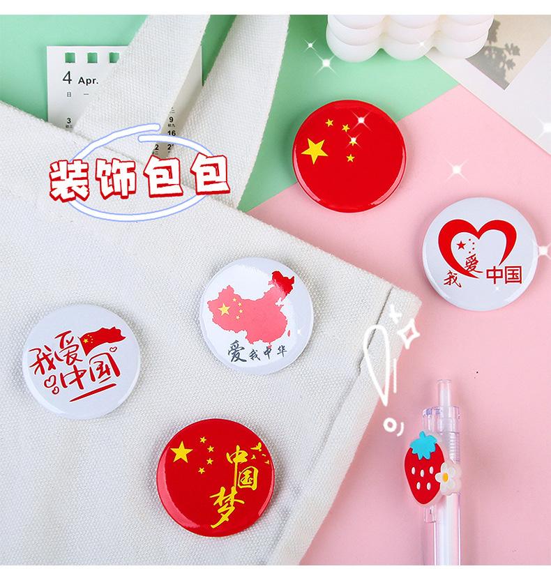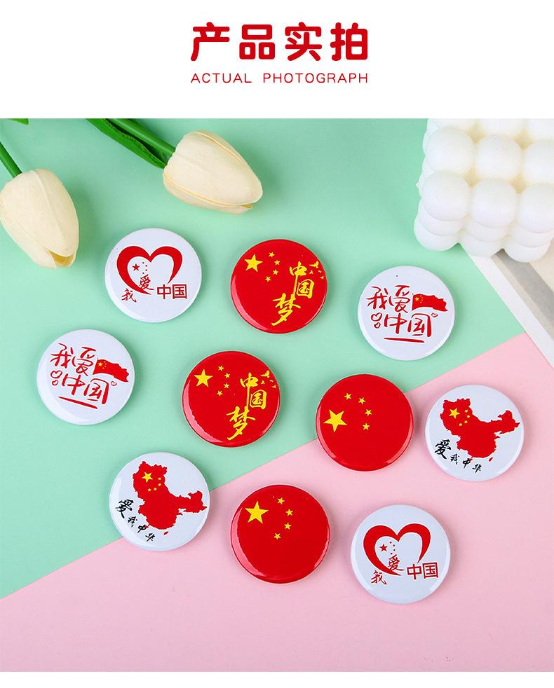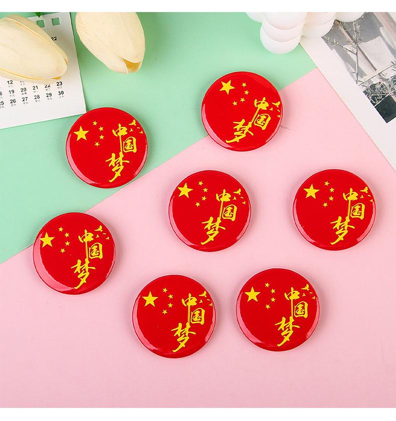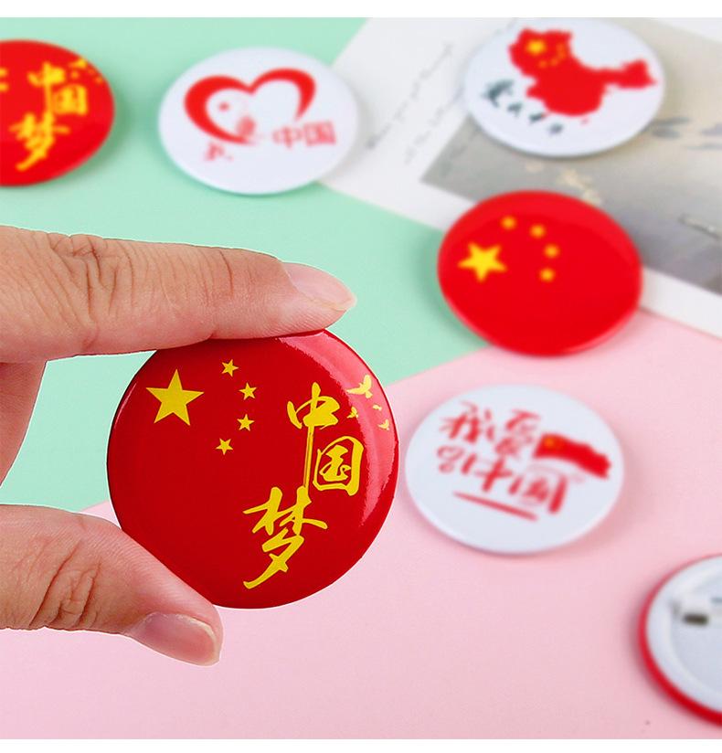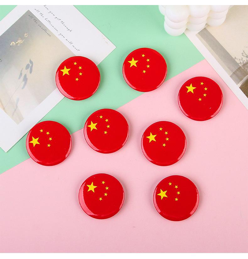 Broche de hojalata de estilo chino, insignia de bandera roja de cinco estrellas, insignia de rendimiento de actividad para niños de jardín de infantes