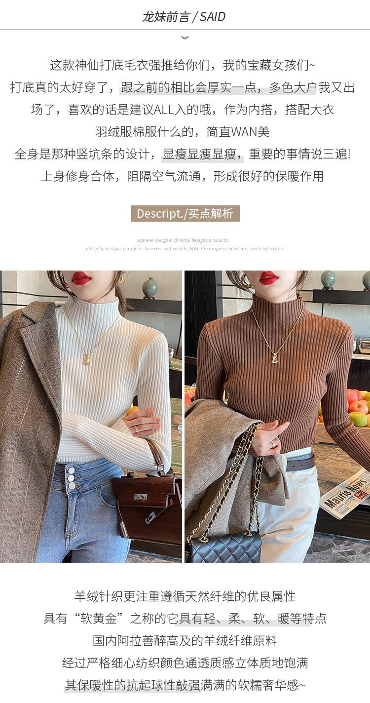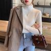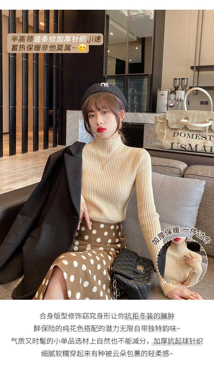 Suéter de Cuello Alto Medio Camiseta Base para Mujer, Otoño e Invierno Espesado Nuevo Estilo 2025, Top Blanco Versátil, Tejido Elegante