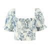 Camisa Floral de Cuello Cuadrado para Mujer 2025 Verano Nuevo Estilo Manga Abullonada Retro Francés Ropa Exterior Estilo Occidental Manga Corta Camisa Babydoll
