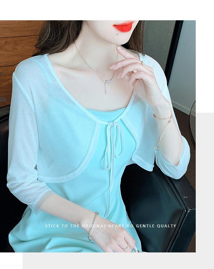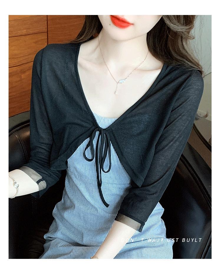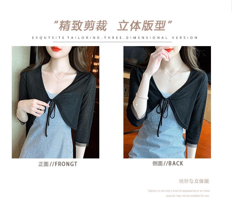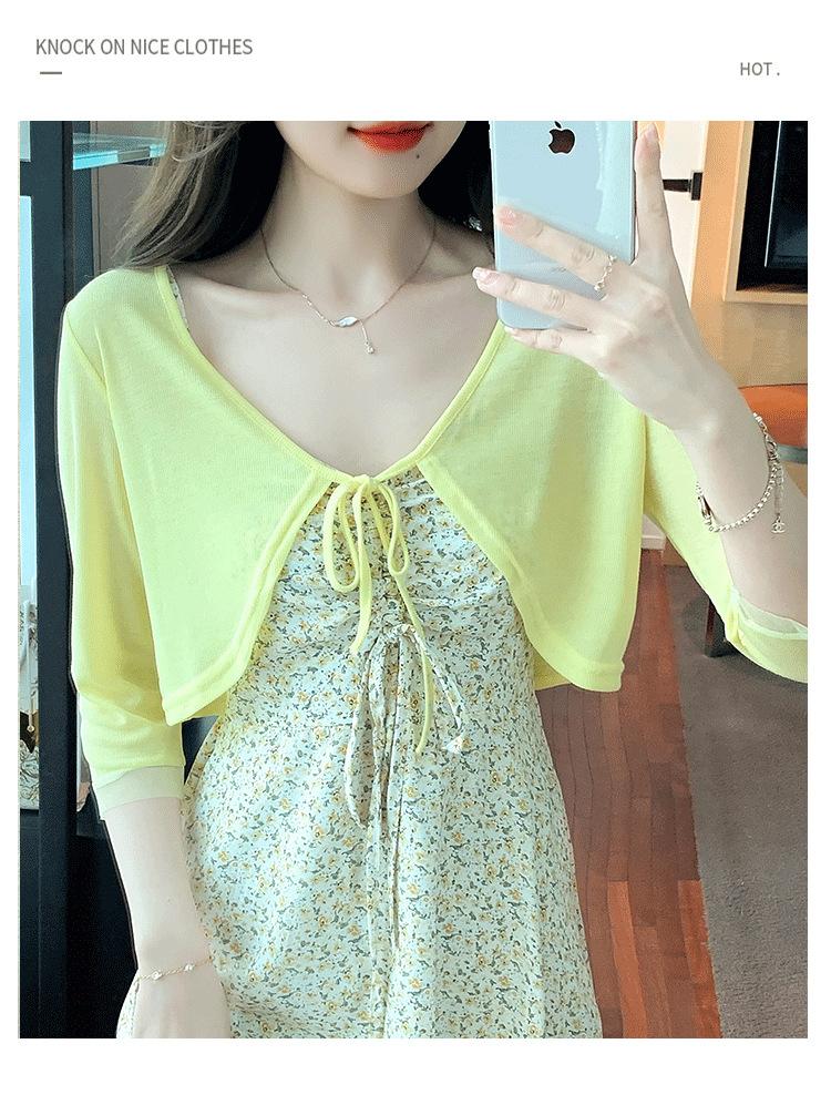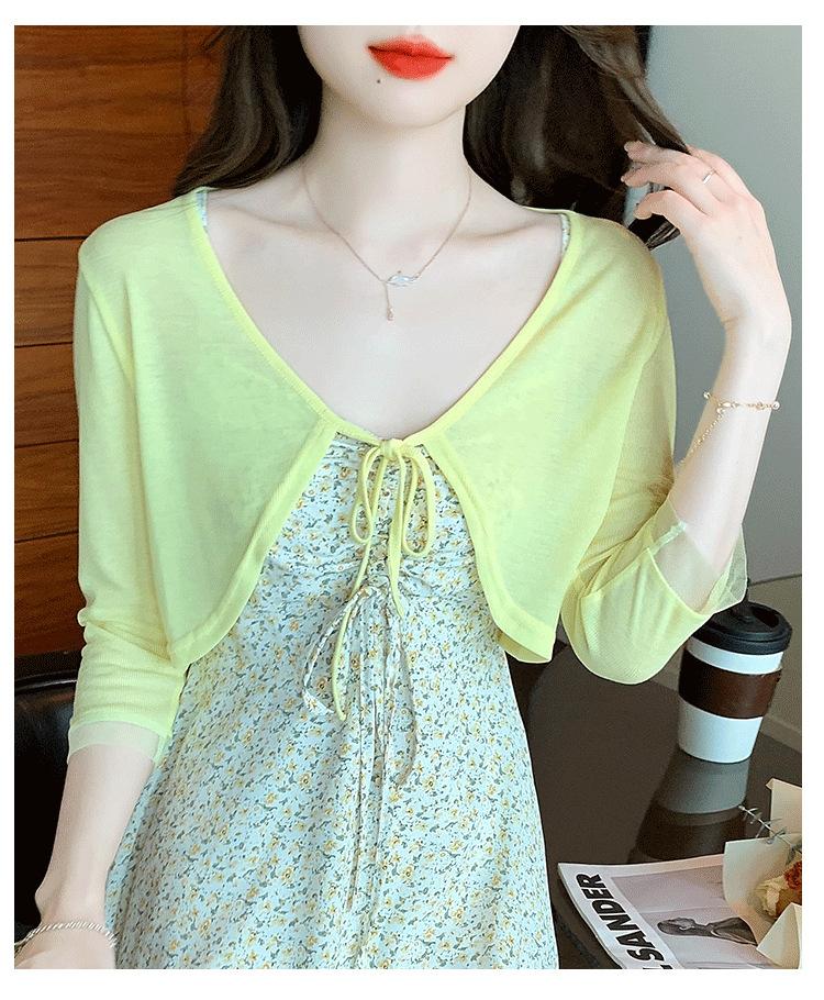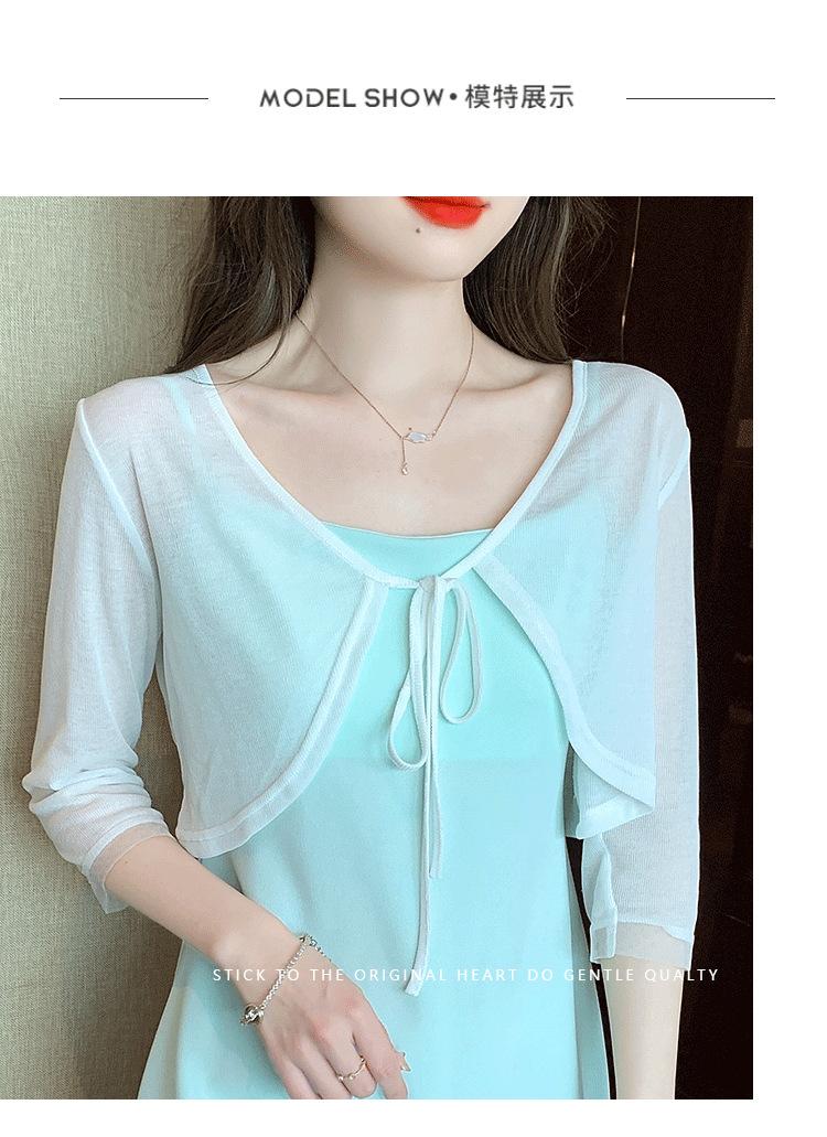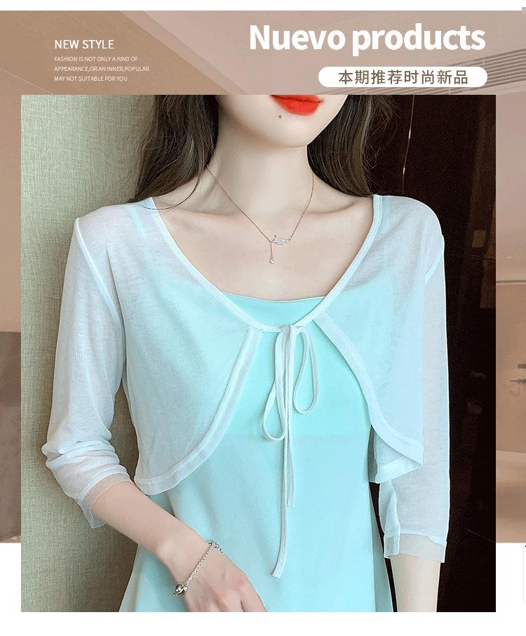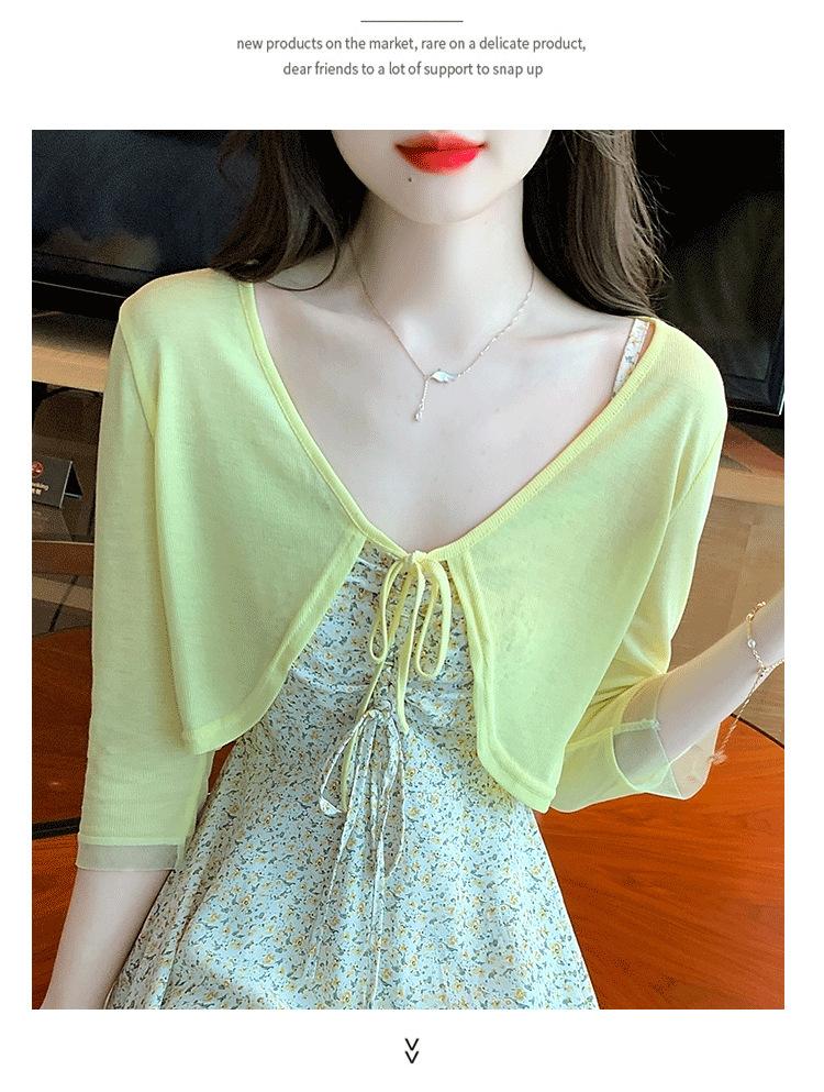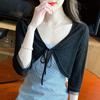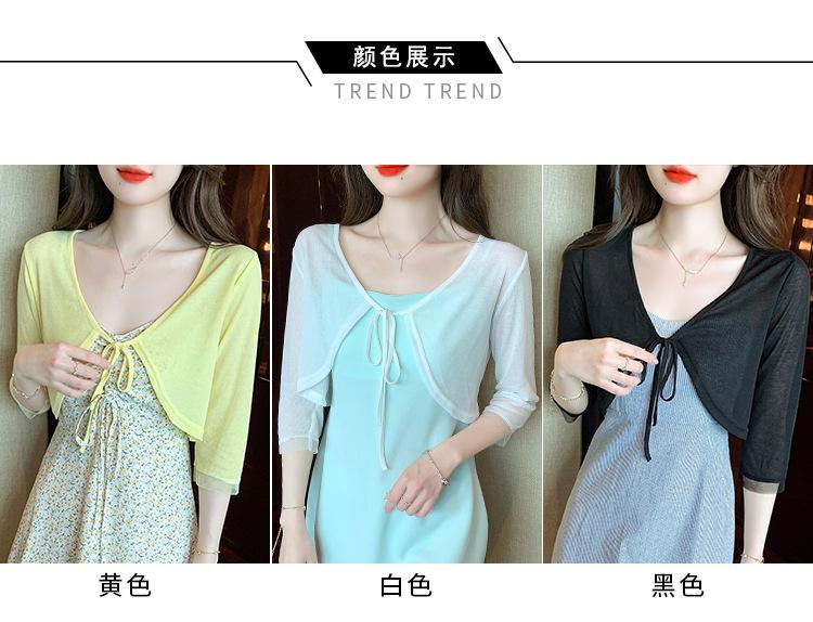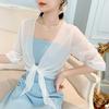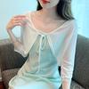 Primavera y Verano 2025 Talla Grande Chal de Chifón para Mujer Manga Media Chaqueta Pequeña Suéter de Punto Chaqueta Francesa Cárdigan Protección Solar