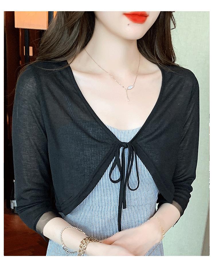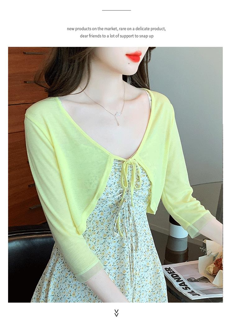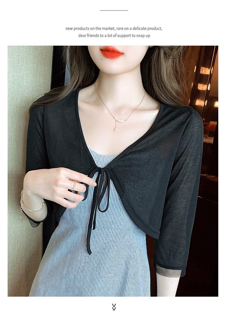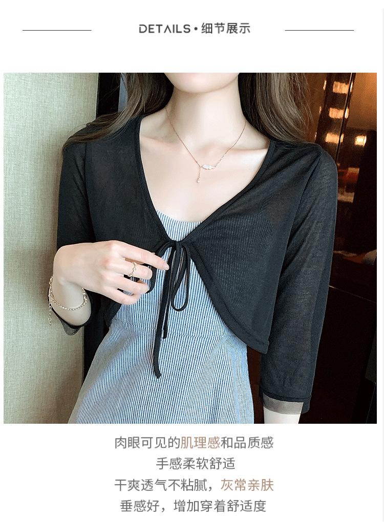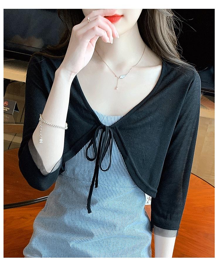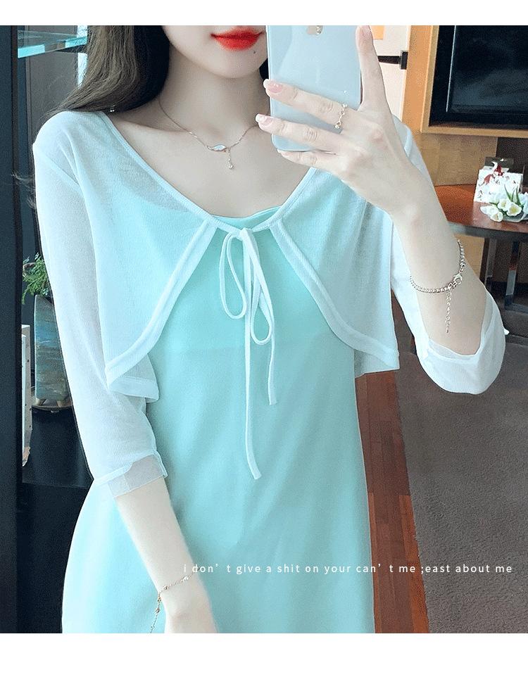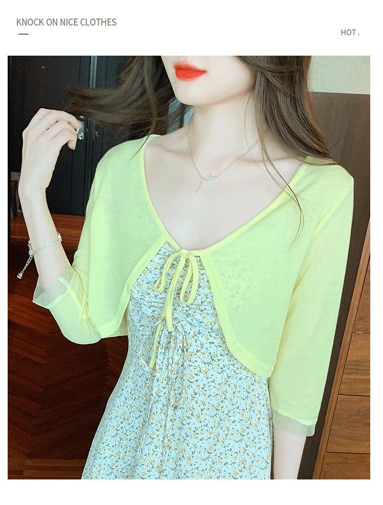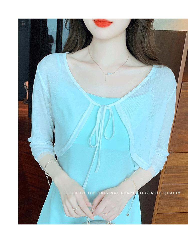 Primavera y Verano 2025 Talla Grande Chal de Chifón para Mujer Manga Media Chaqueta Pequeña Suéter de Punto Chaqueta Francesa Cárdigan Protección Solar